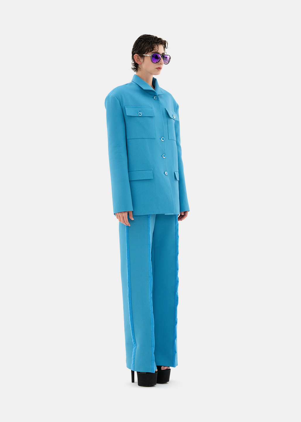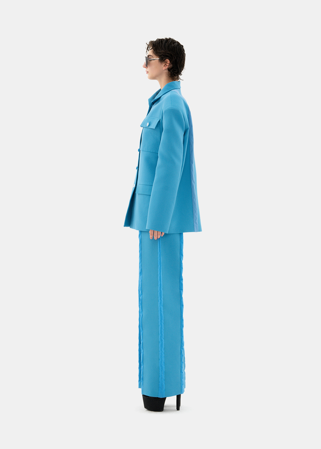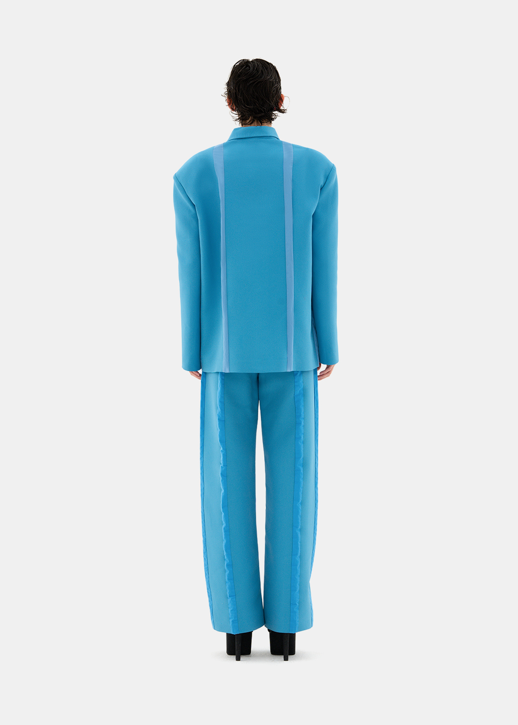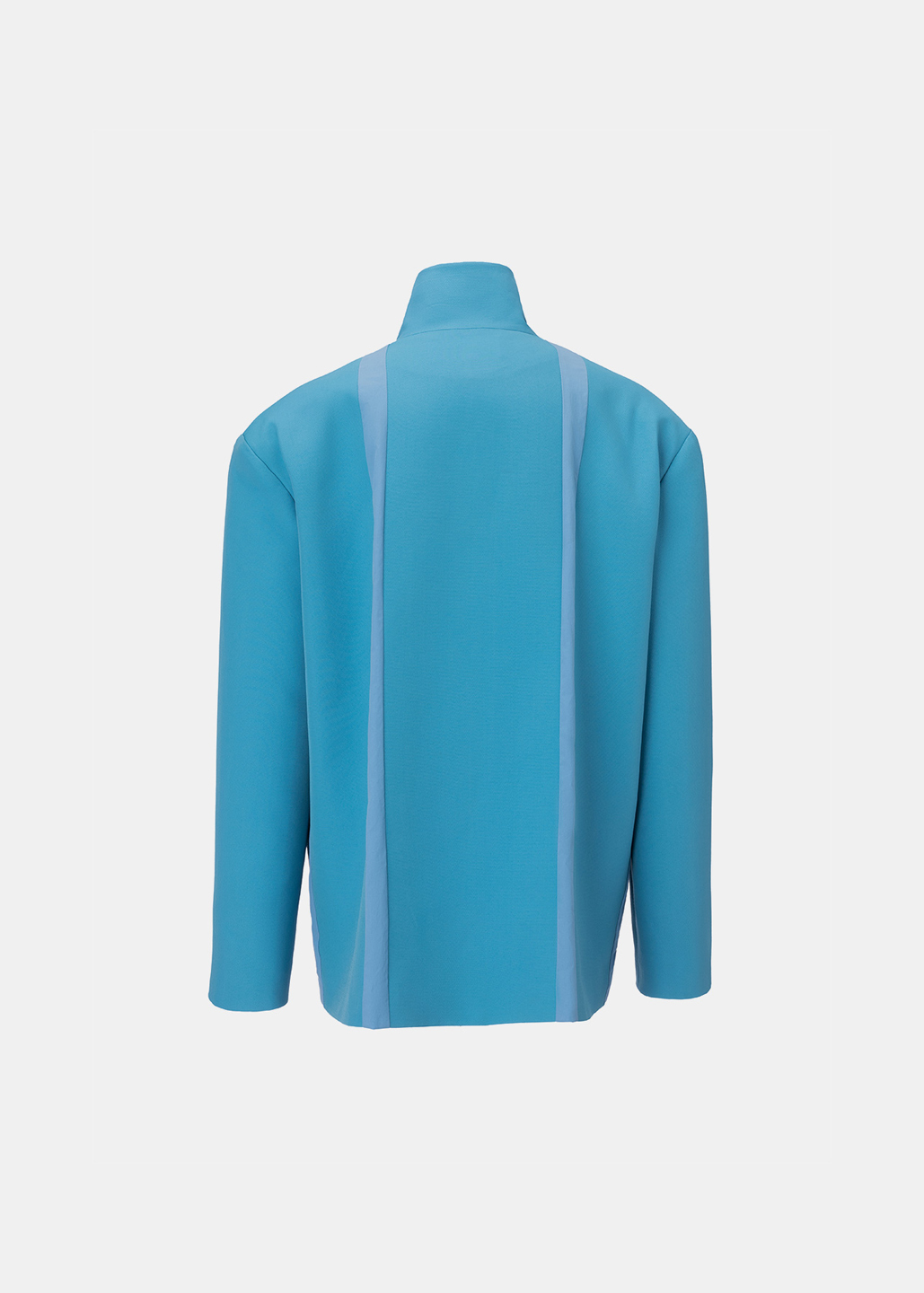 选用鲜明蓝色调,That’s CHU 采用经典立领与宽阔肩部剪裁。简约设计中低调融合力量感与不羁气质。多功能口袋提升实用性,背部浅蓝面料拼接灵感源自阳光在湖面的反射,打造简约与个性兼具的百搭单品。