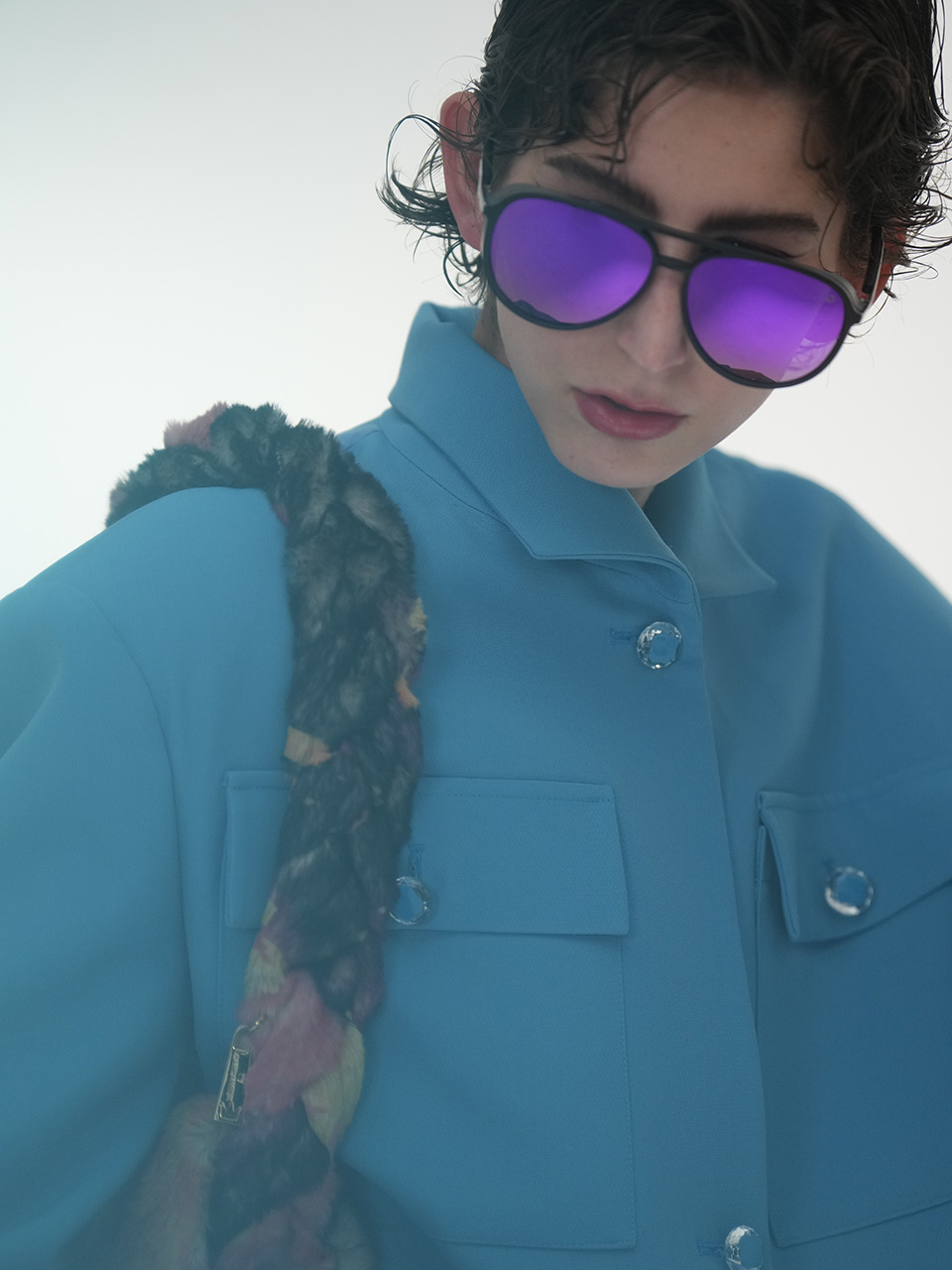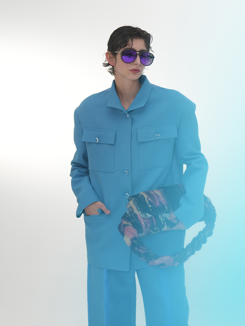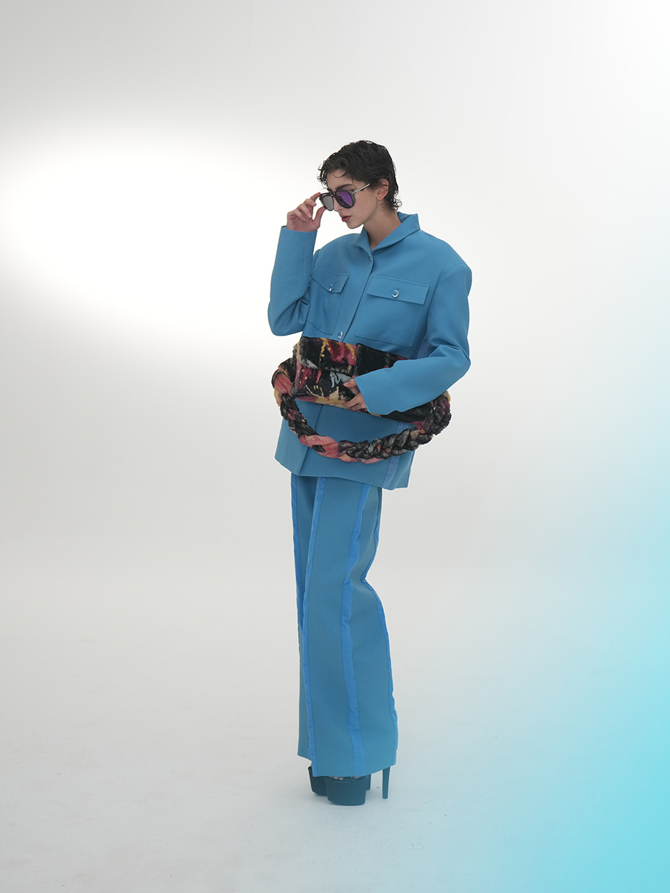 本系列灵感源自湖面阳光折射的蓝色调变化。利落剪裁搭配厚实面料,兼顾优雅质感与保暖性。醒目设计衬托穿着者的自信气质,诠释*“THAT’S CHU”*摩登大胆的品牌精神。