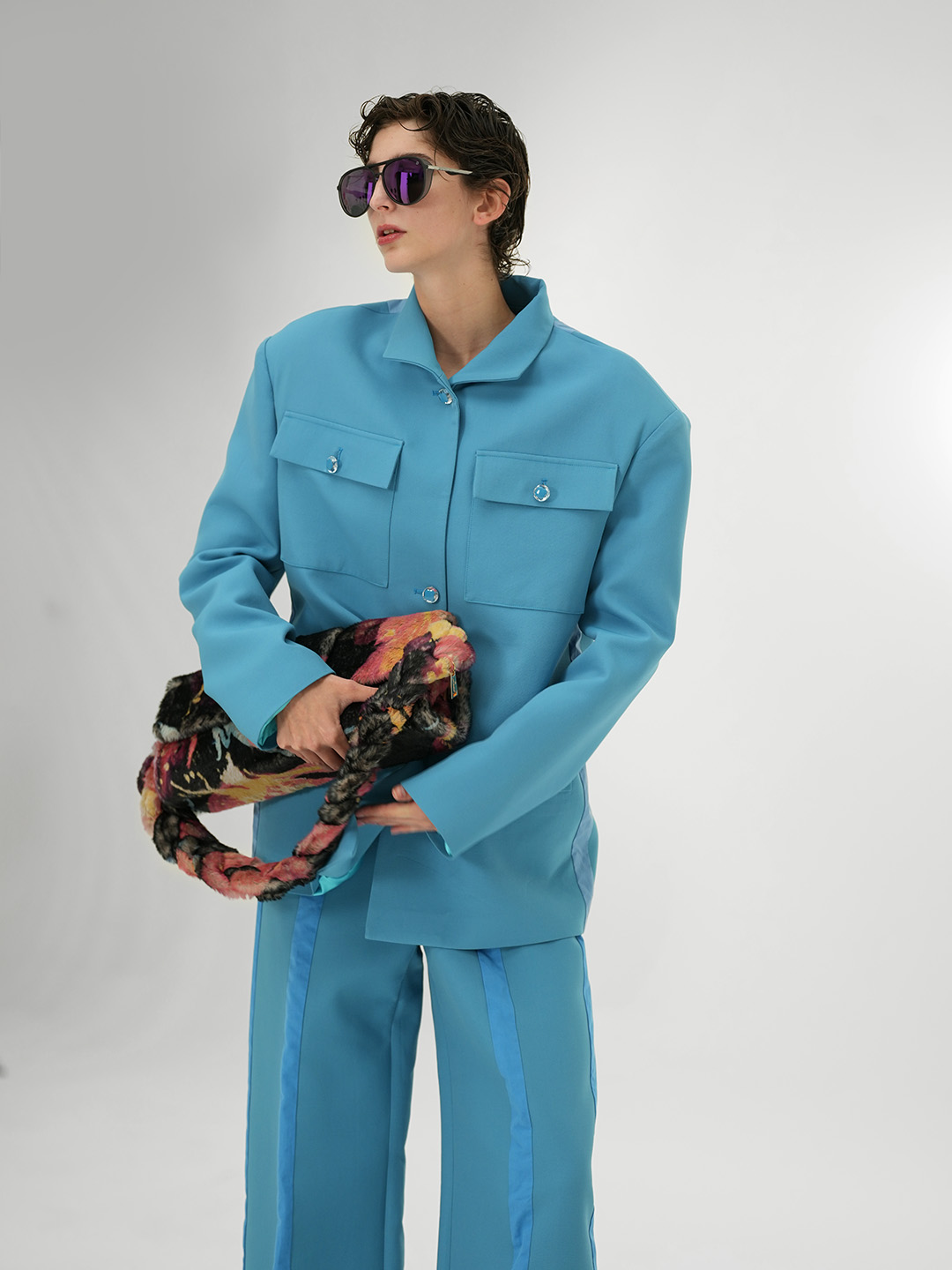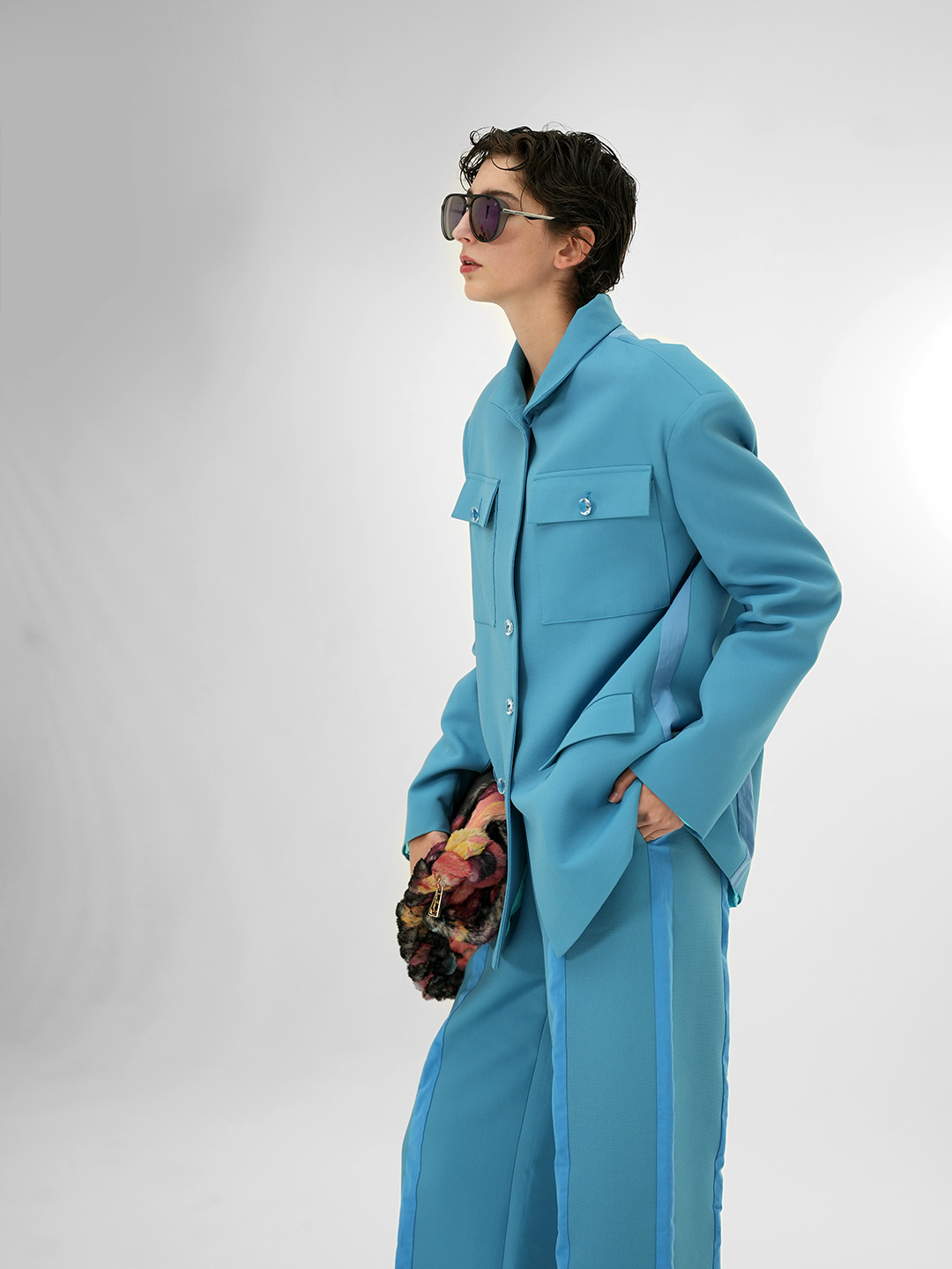 本系列灵感来源于阳光洒在湖面上时产生的不同蓝色调。挺括的剪影搭配厚实面料,既优雅又保暖,令人眼前一亮。它轻松展现个人魅力,完美诠释了 THAT'S CHU 的态度。