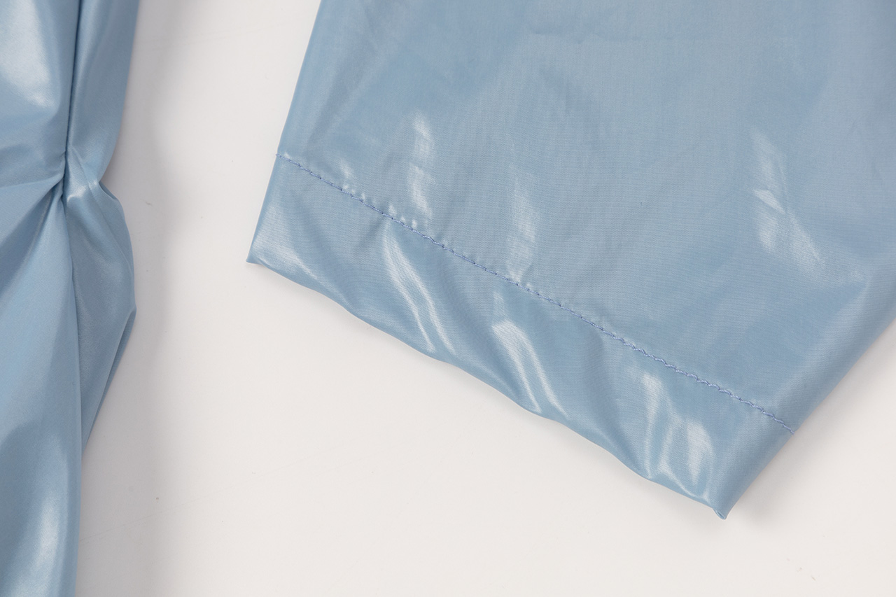 整套服装通过色彩与材质的巧妙搭配,打造出统一而富有变化的时尚风格。整体色彩以浅蓝至灰蓝为主,营造出和谐而富有层次感的视觉体验。