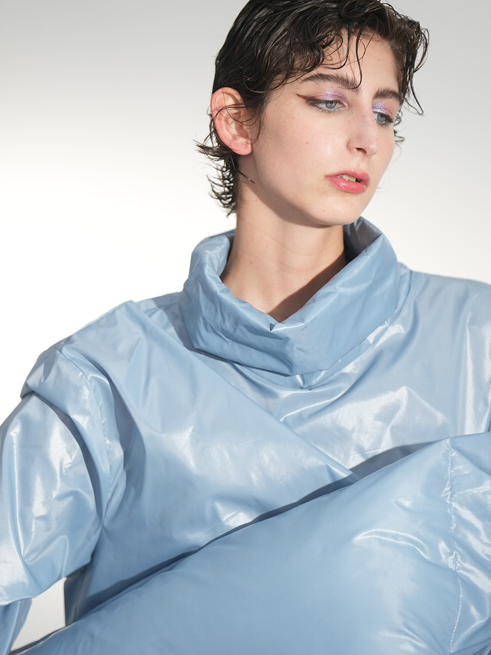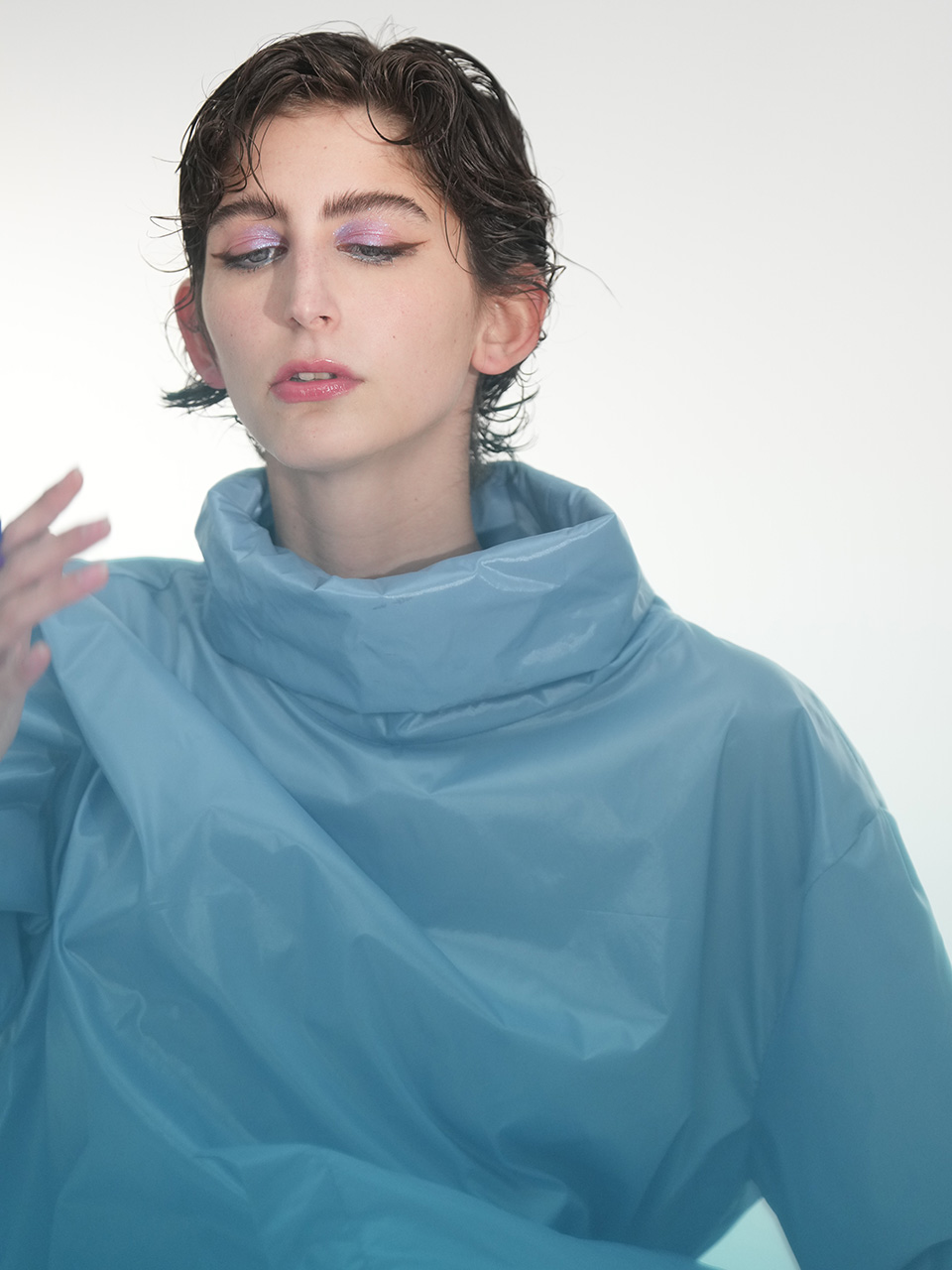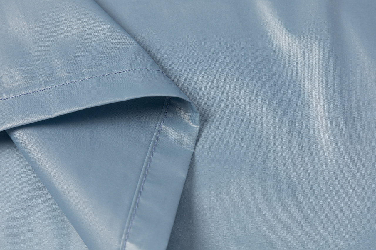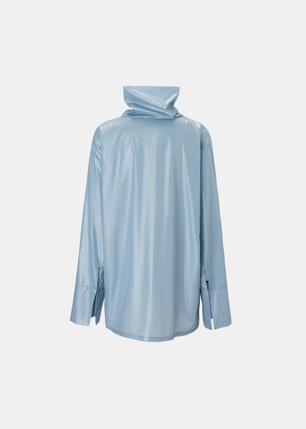 这款雨衣面料不仅耐磨抗刮,还呈现出独特的光泽感。立领设计简洁利落,袖口的长卡其细节与主面料相呼应,展现风格统一。整件衣服没有多余的装饰,回归最纯粹的状态,只为突出面料的质感和设计的简约之美。