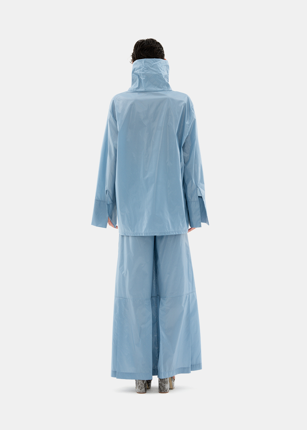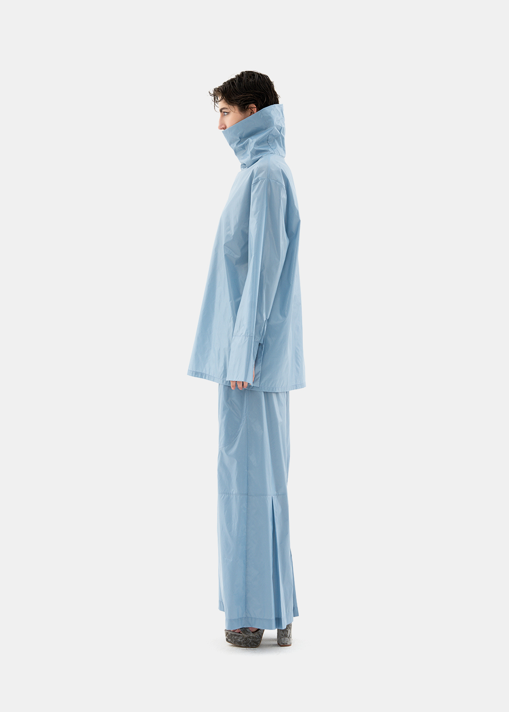 0007-L04-立领卡其雾蓝雨衣