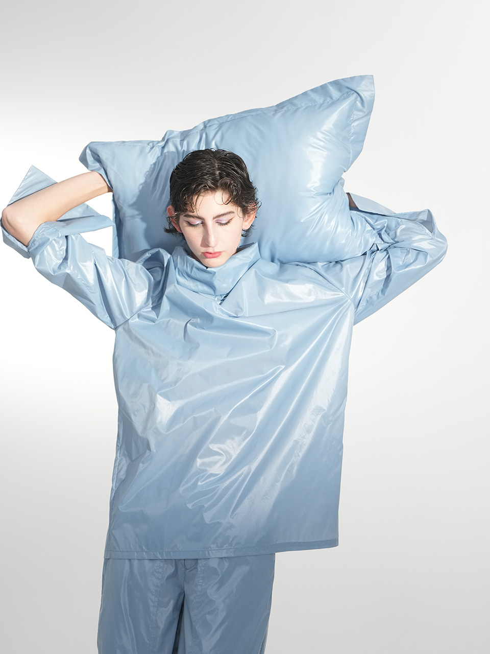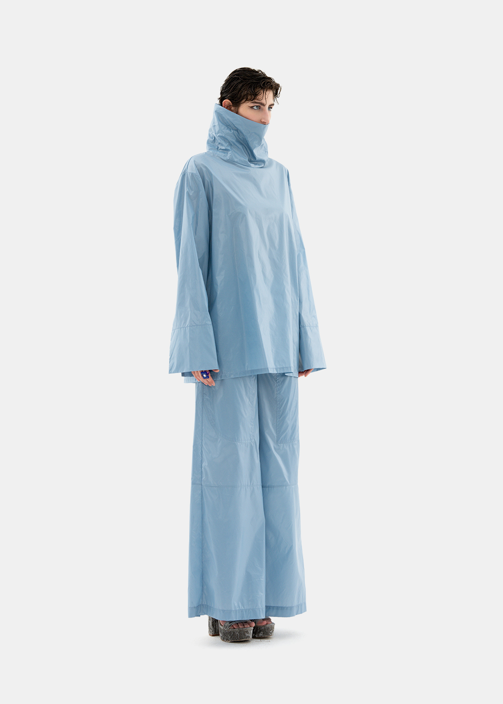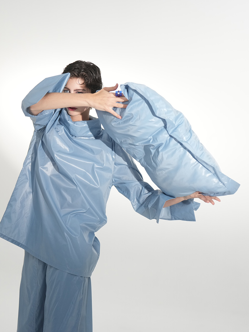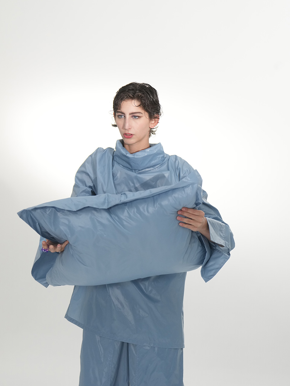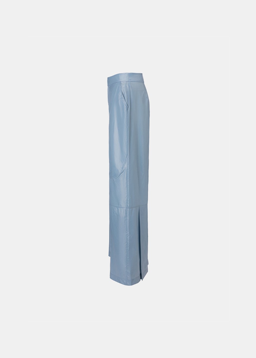 雾蓝色调柔和优雅,与裤装的动态线条相得益彰。精细的剪裁与缝线工艺增添了裤装的层次感与立体感,为穿着者提供独特的时尚表达。