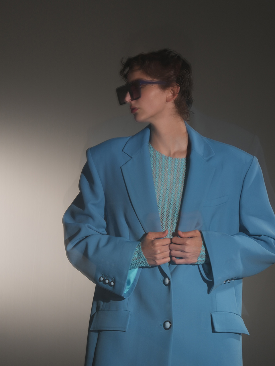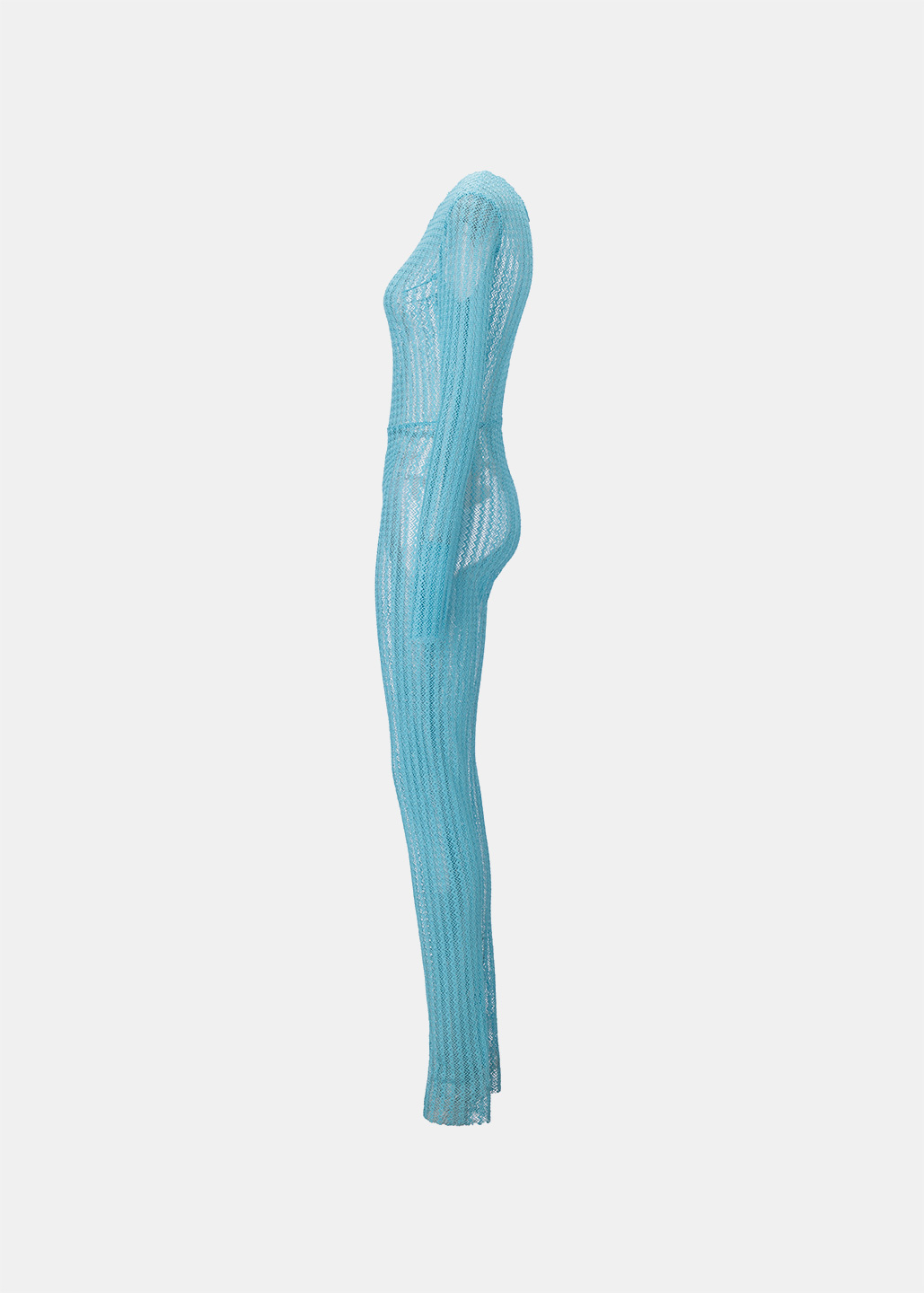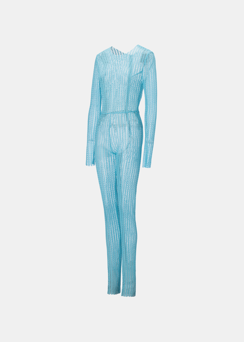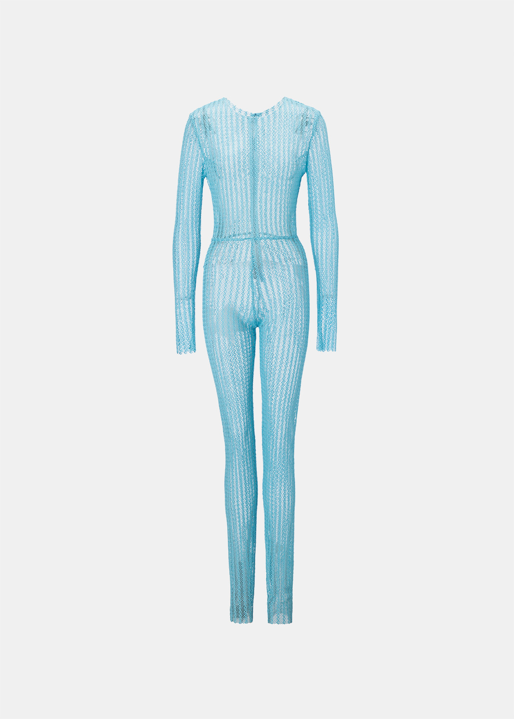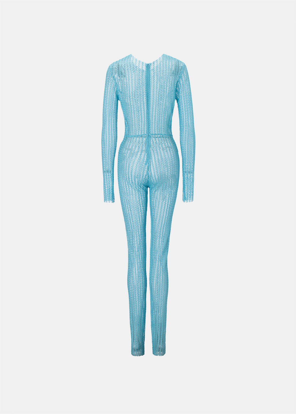 采用充满艺术感的蓝色蕾丝,赋予衣物轻盈、性感与年轻的独特魅力。连体衣版型贴合人体曲线,巧妙展现身材优势的内搭单品。