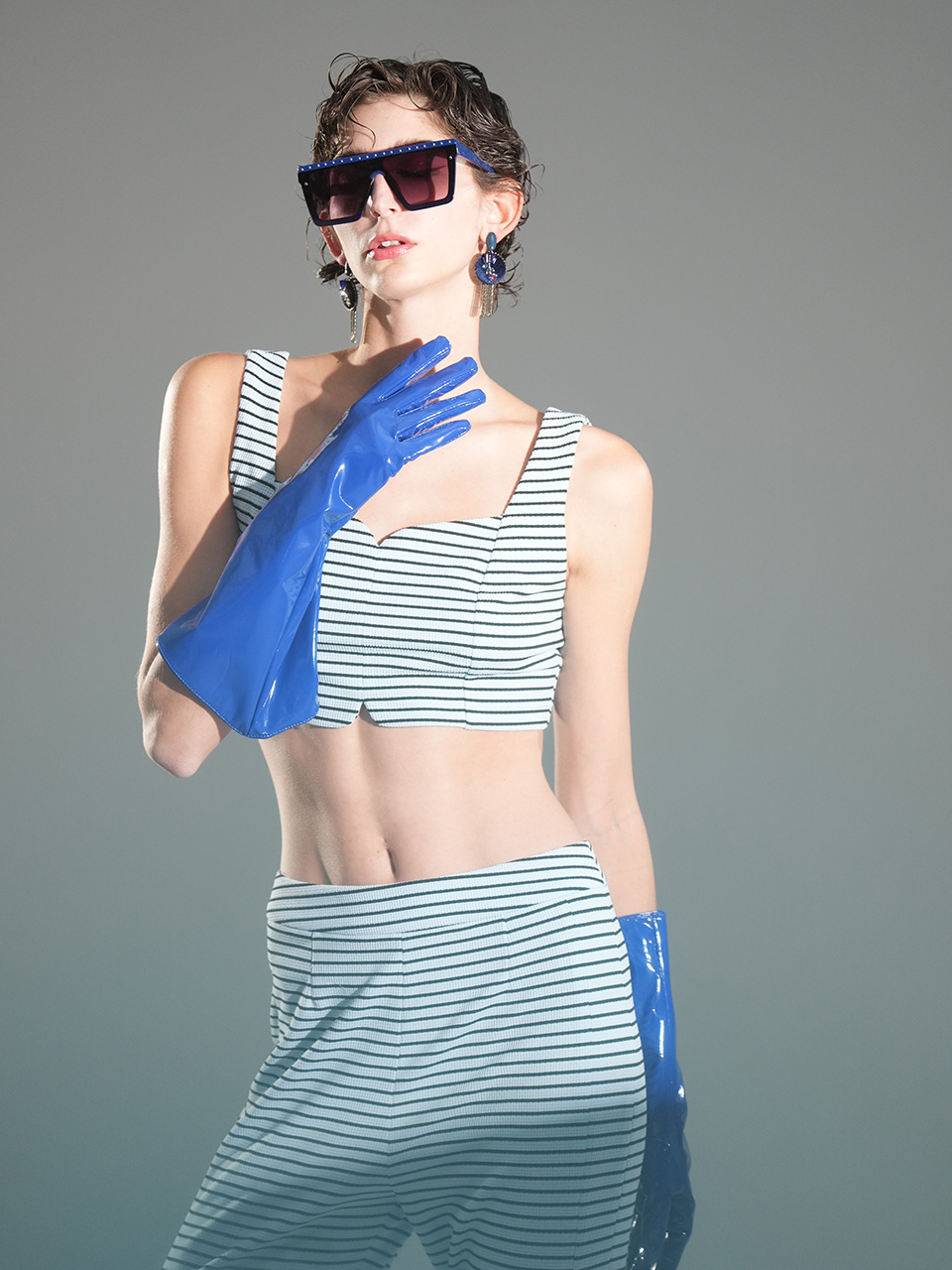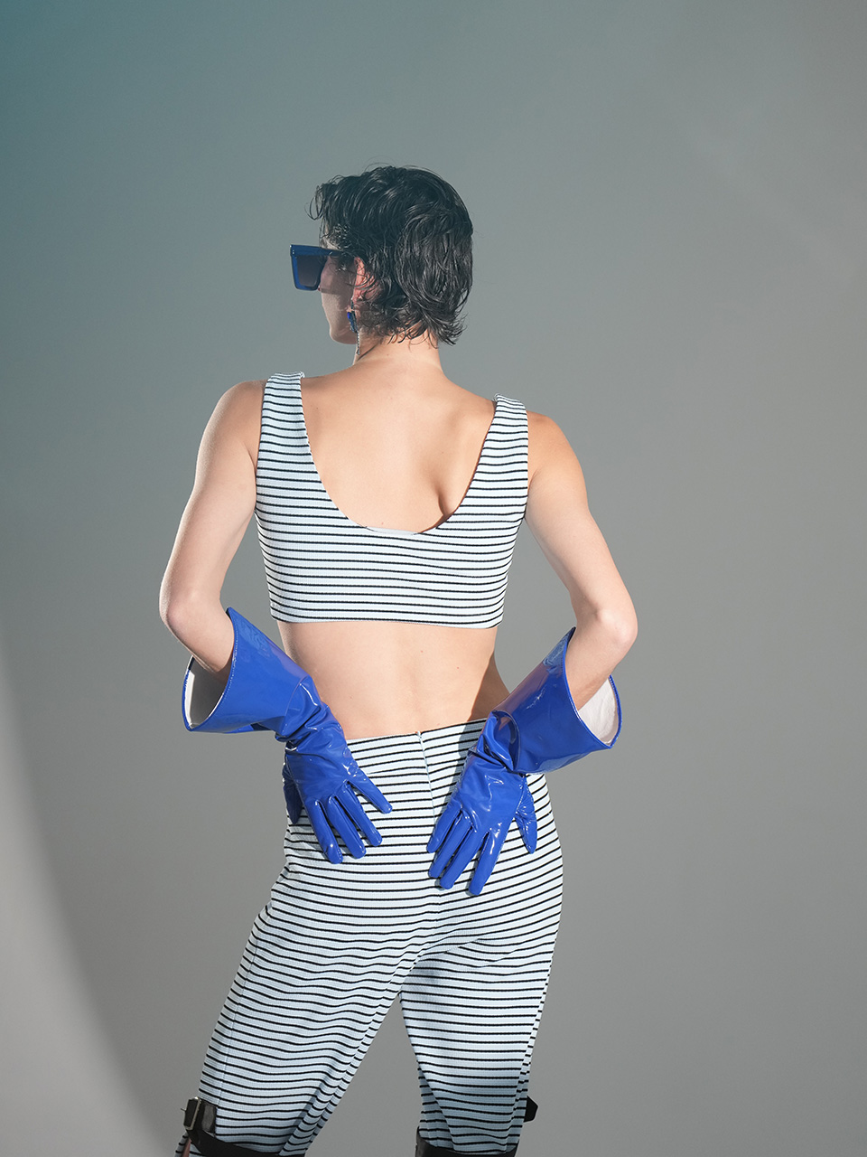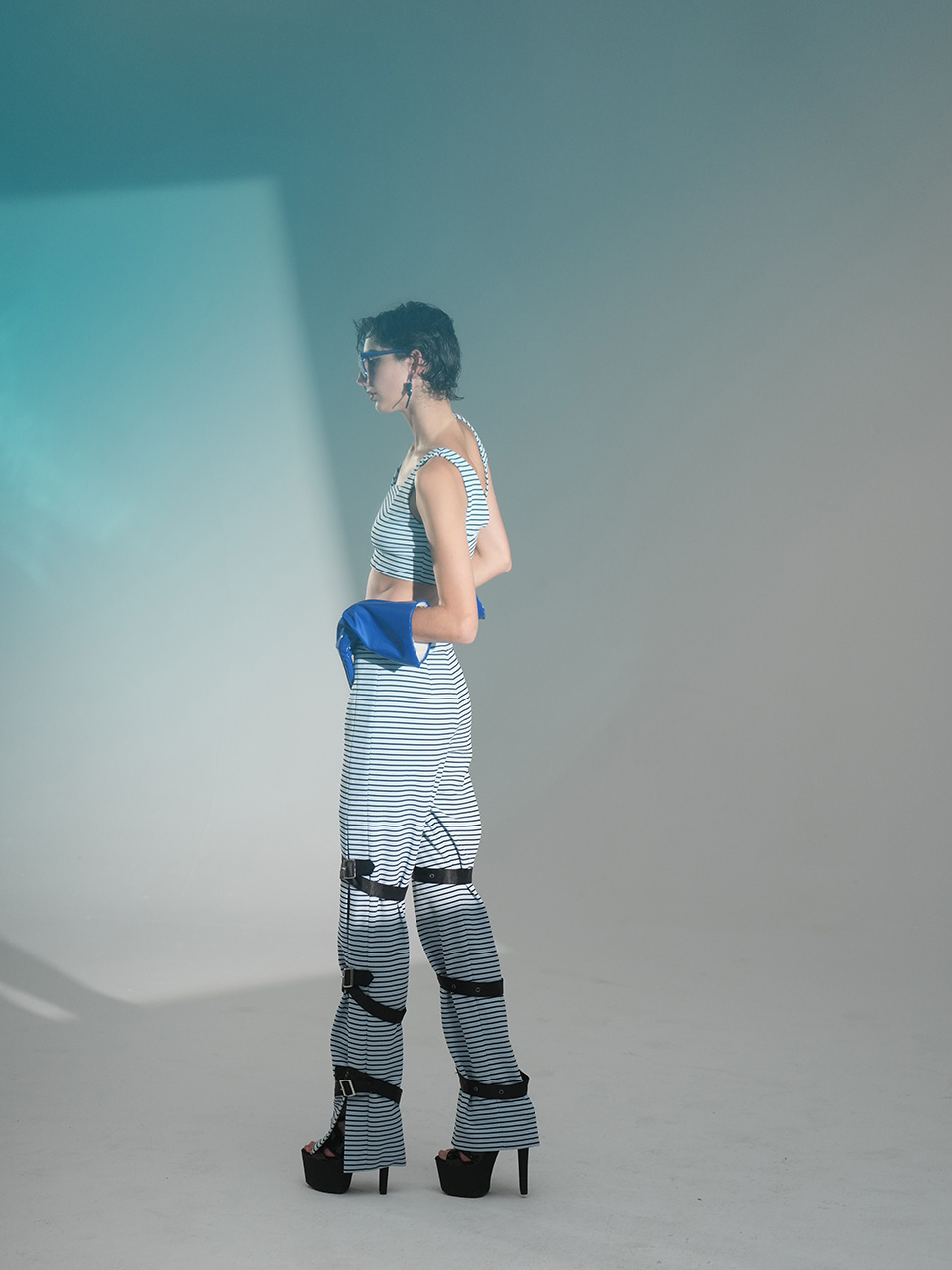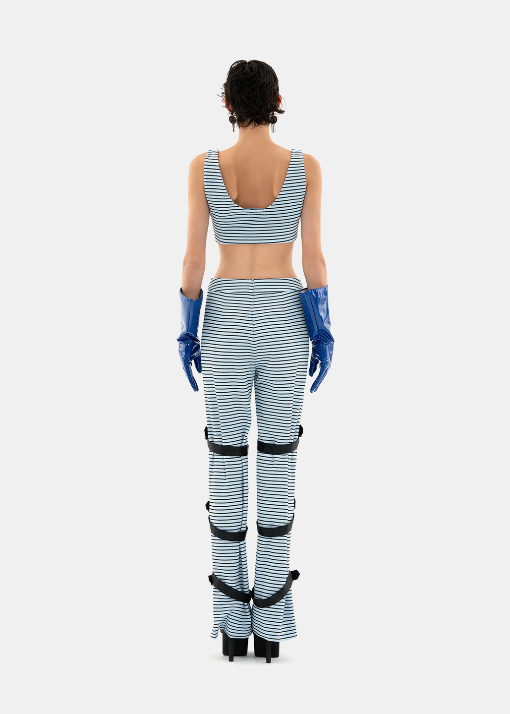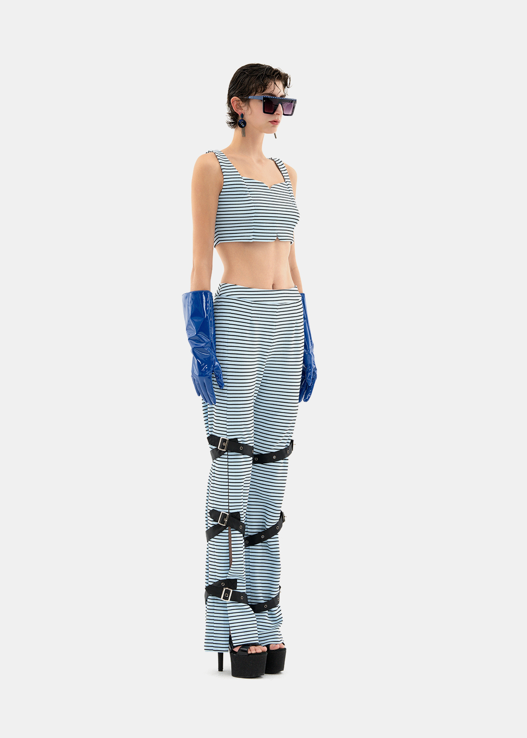 整套服装中,上身酷感内衣与下身工装裤展现出青春活力与动感。内衣可单独穿着,在街头吸引目光,也可作为内搭进行叠穿。裤装的扣具可根据个人喜好实现不同效果,打造属于自己的时尚造型。