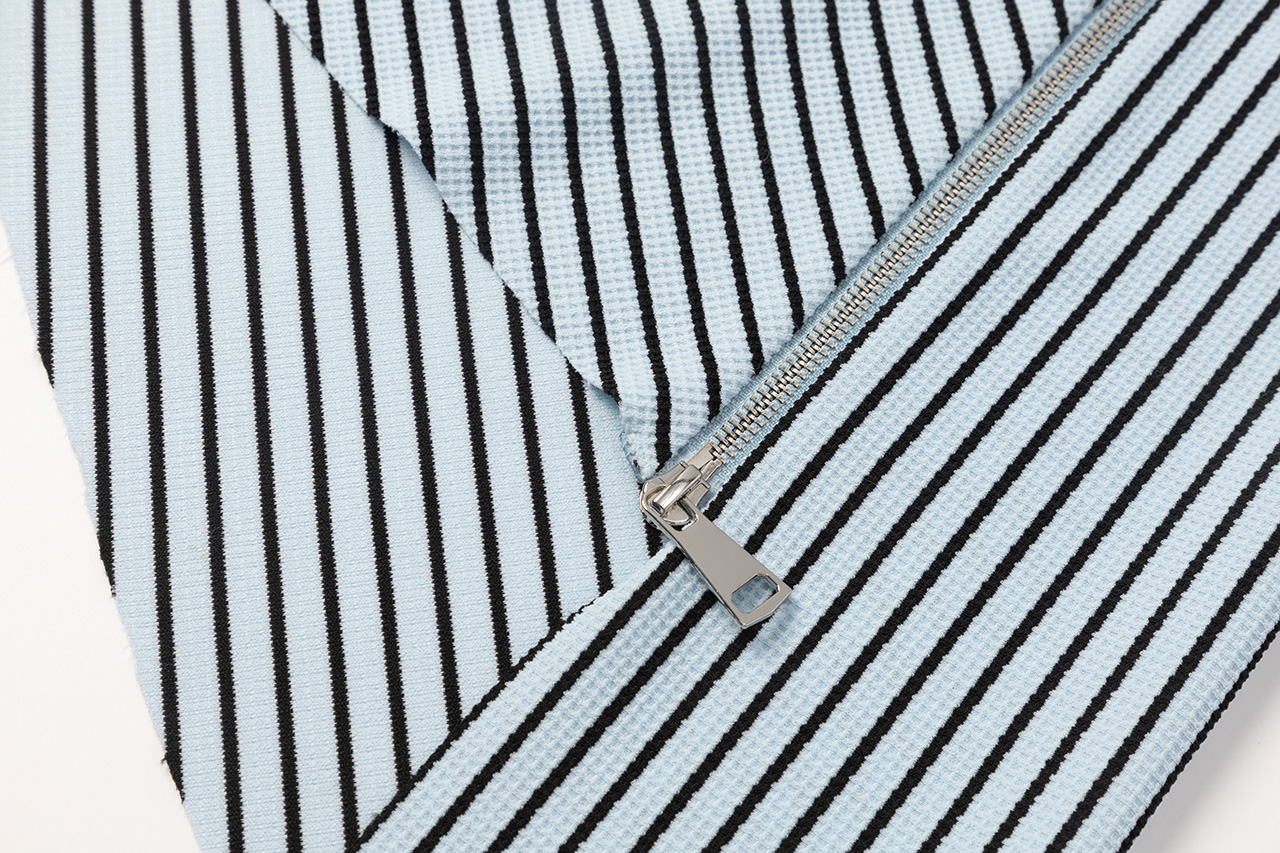 随着拉链将服装分割,面料的质感也随之变化,营造出层次丰富的视觉效果。