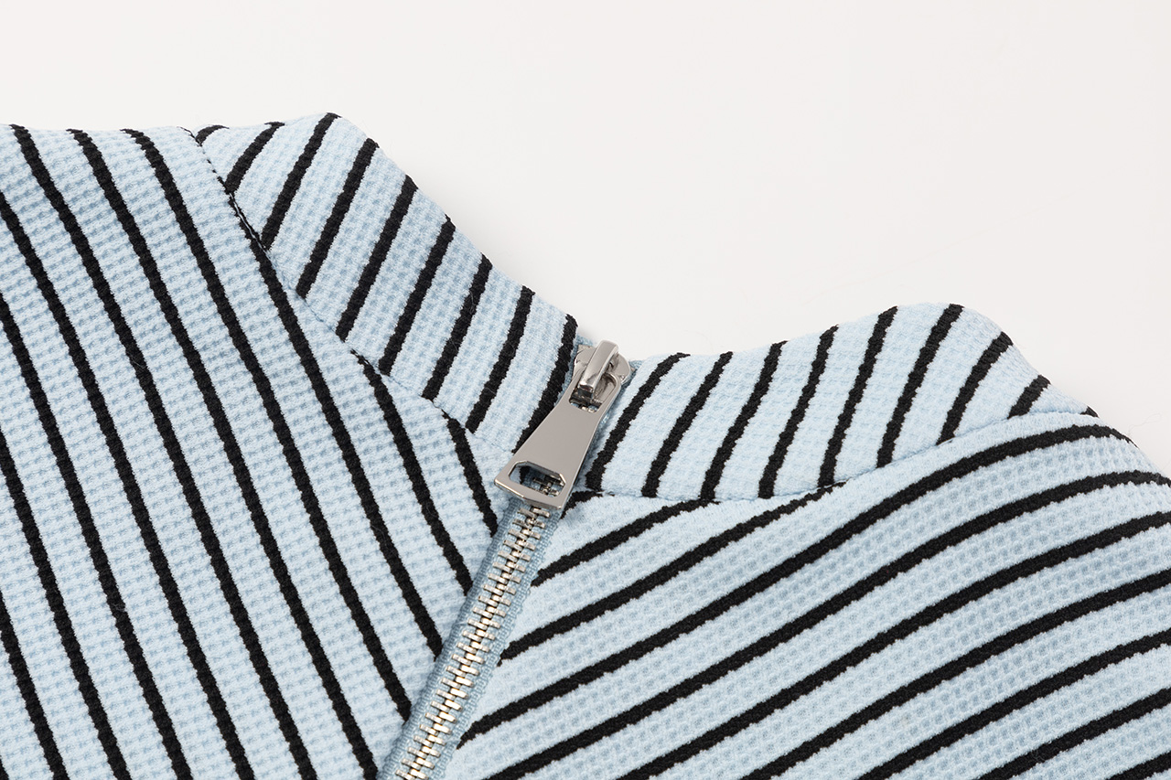 0023-L12-1米拉链蓝黑条纹连衣裙