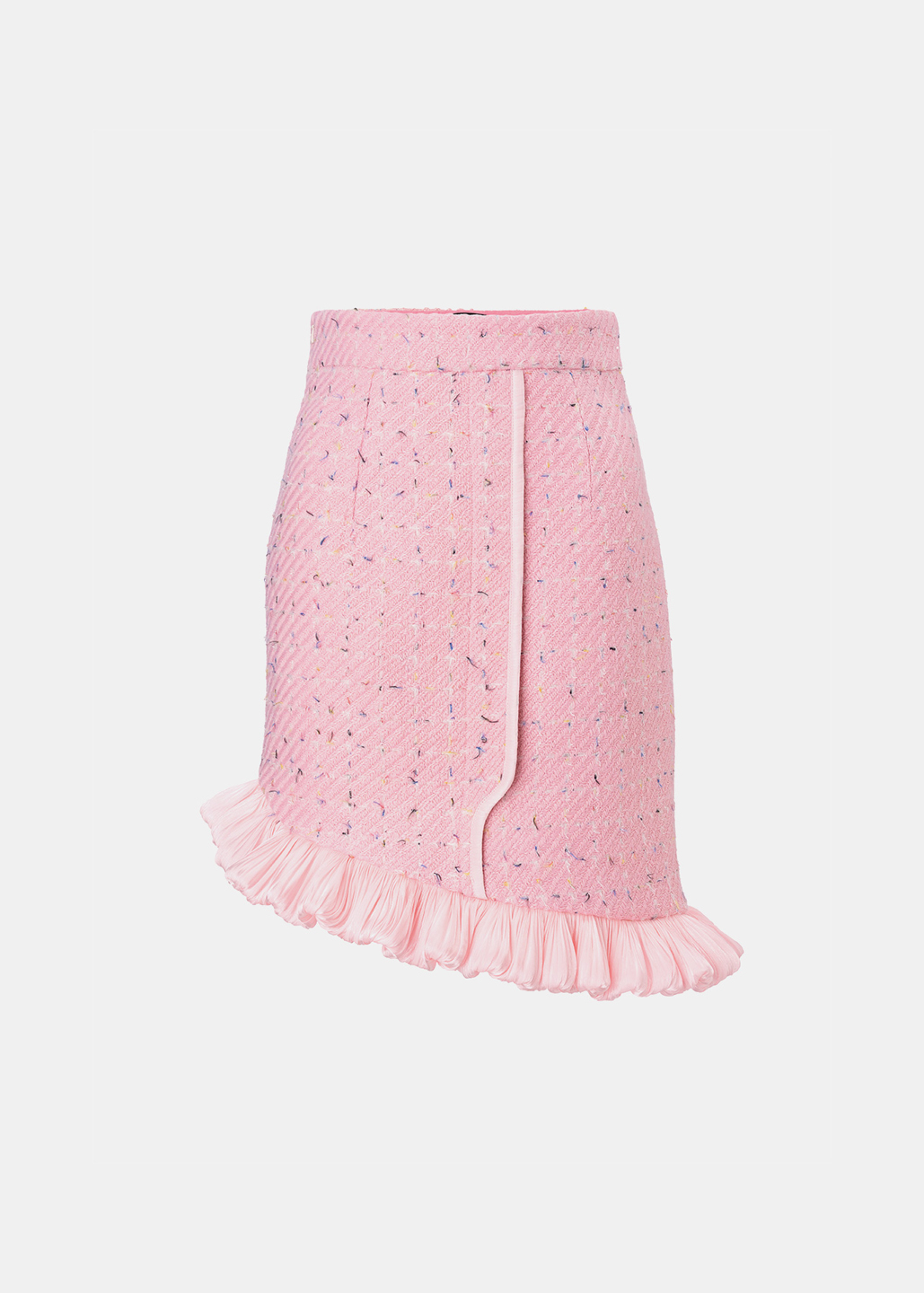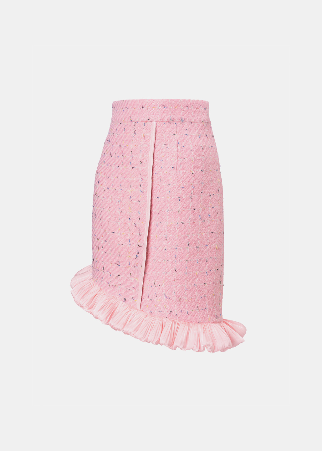 整套服装搭配闪亮特殊面料与经典小香风粗花呢面料,华丽、优雅、时尚,派对气质十足,无论何种动作都彰显年轻态度。
