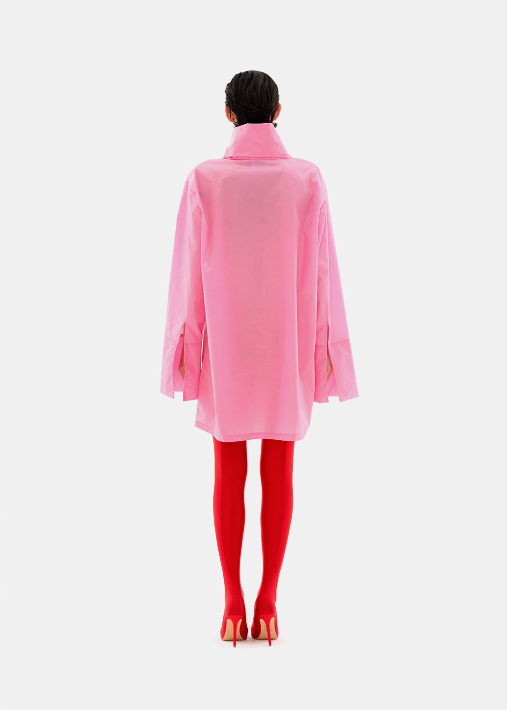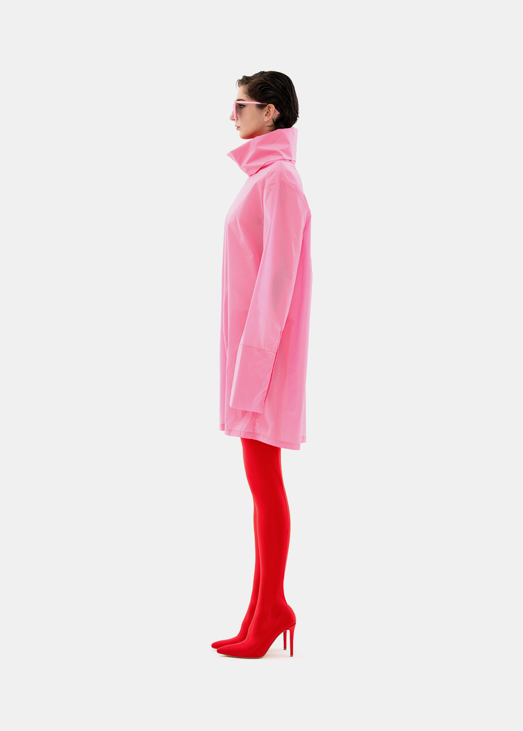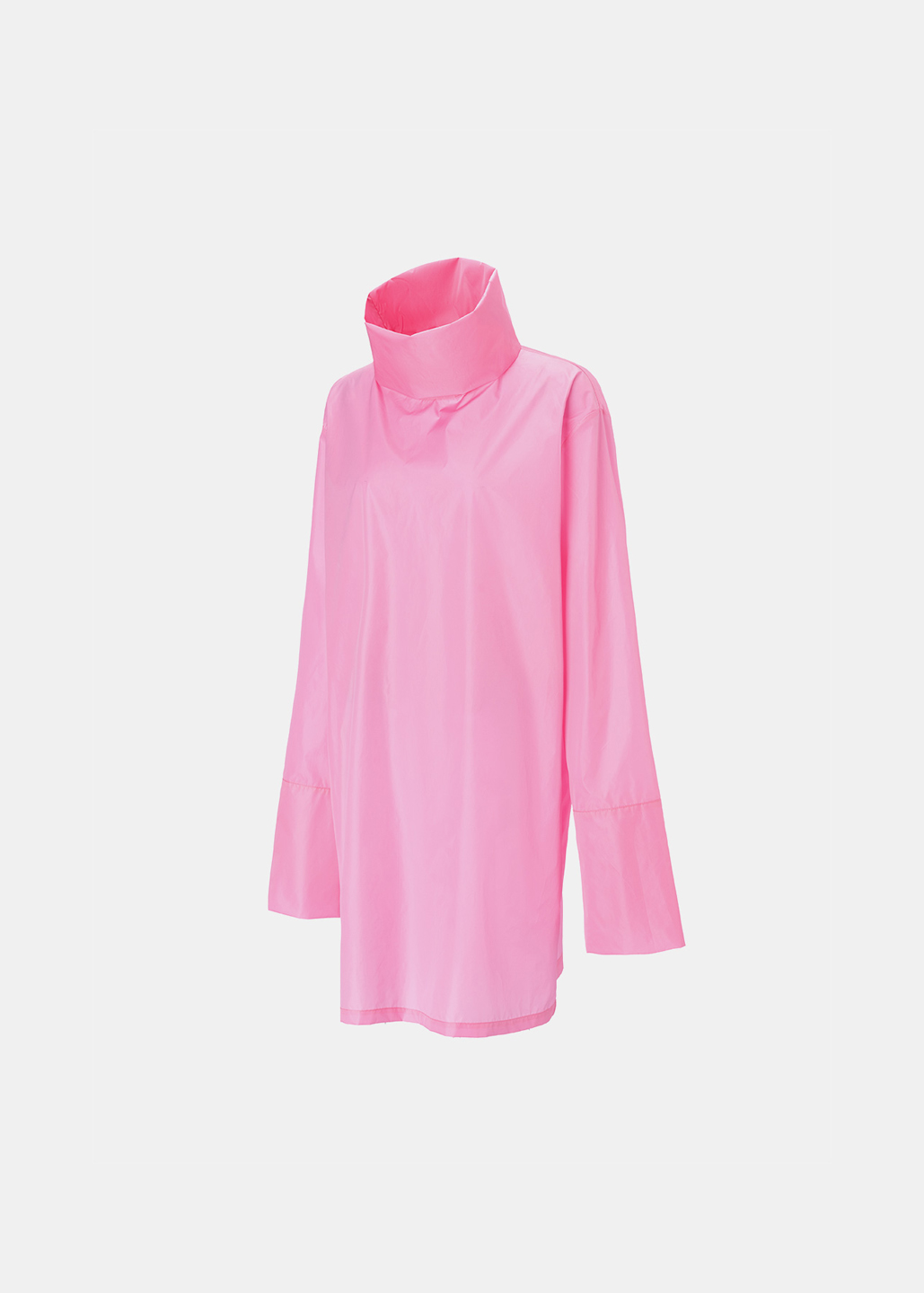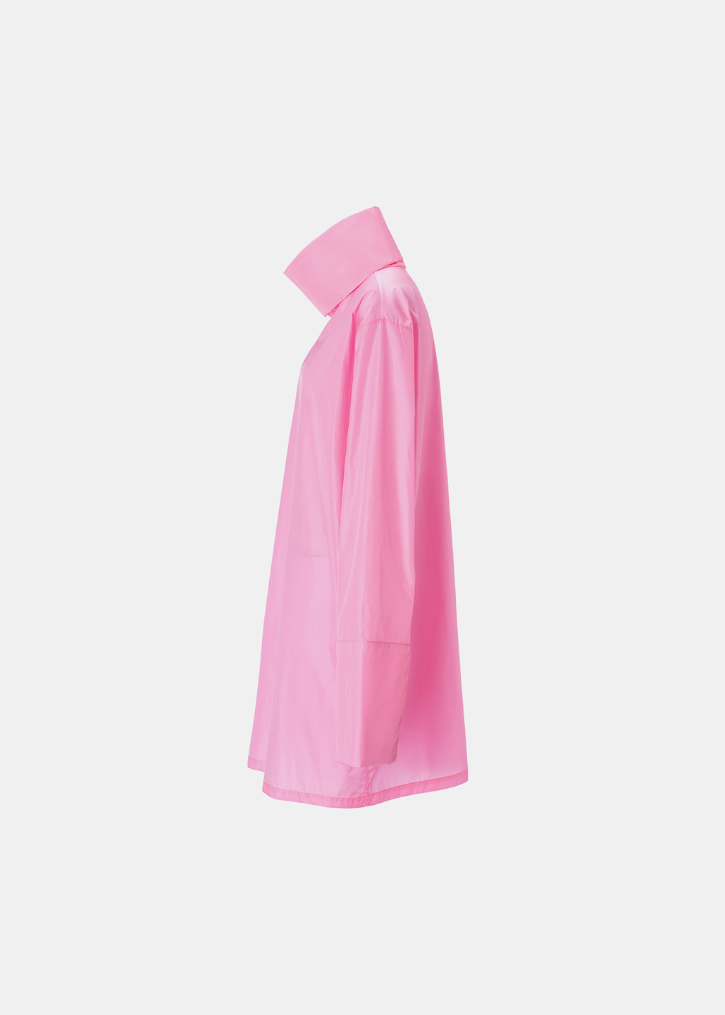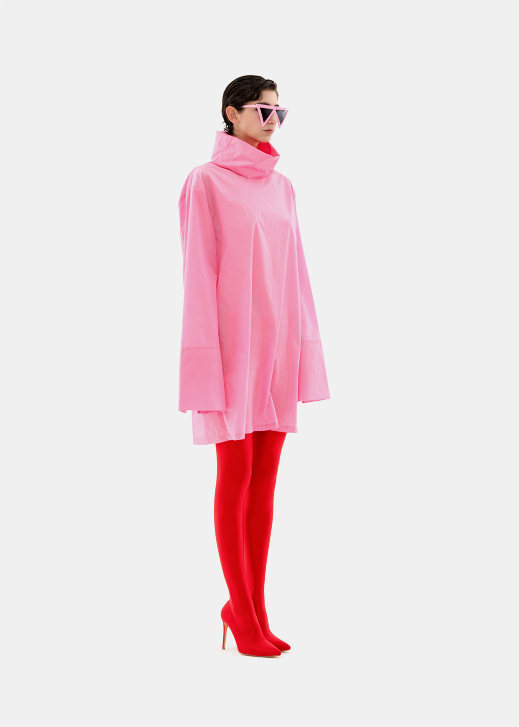 这款粉红卫衣,选用雨衣面料,折射独特光泽,高领剪裁利落干练。袖口长卡夫与主体面料呼应,风格和谐统一。摒弃繁复装饰,回归纯粹本质,彰显面料质感与简约设计之美。