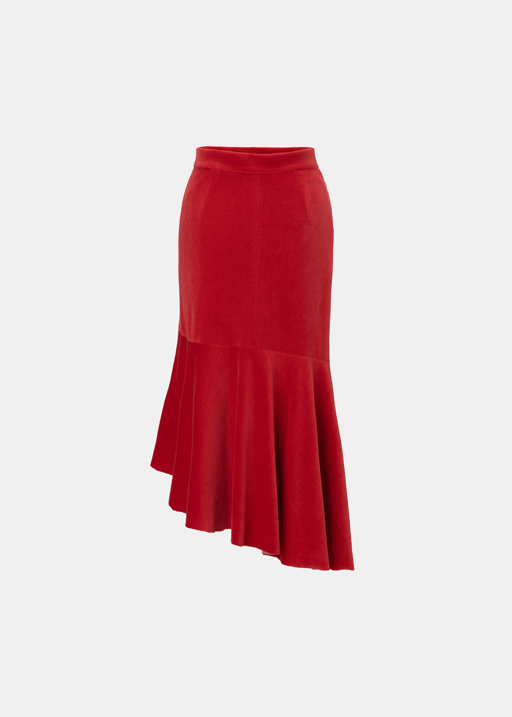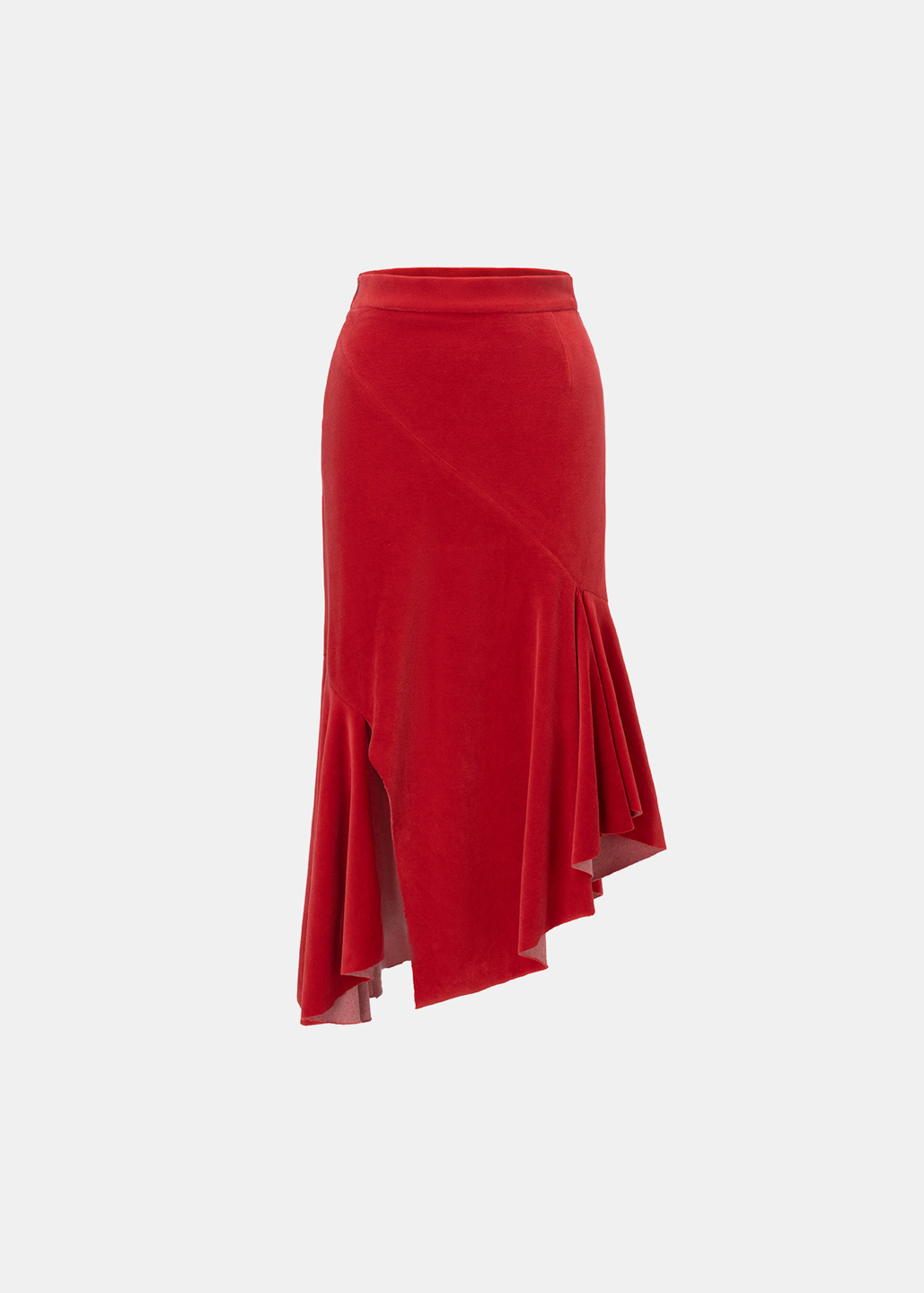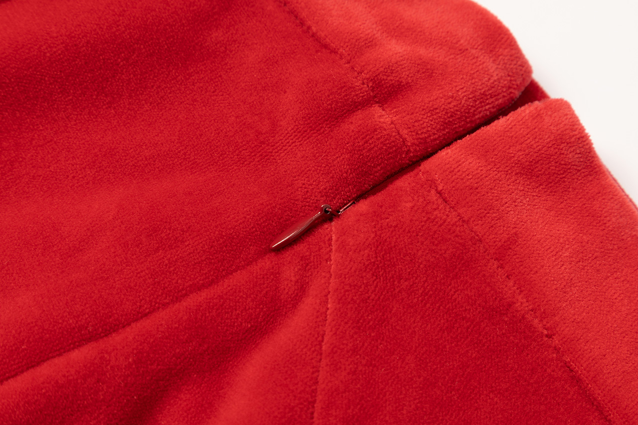 红色细绒开衩斜摆半裙