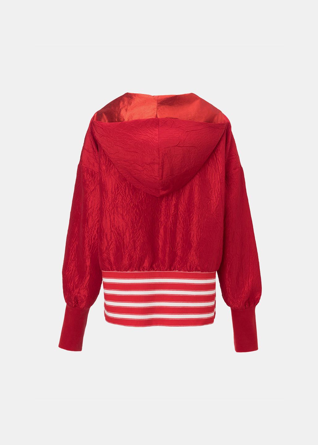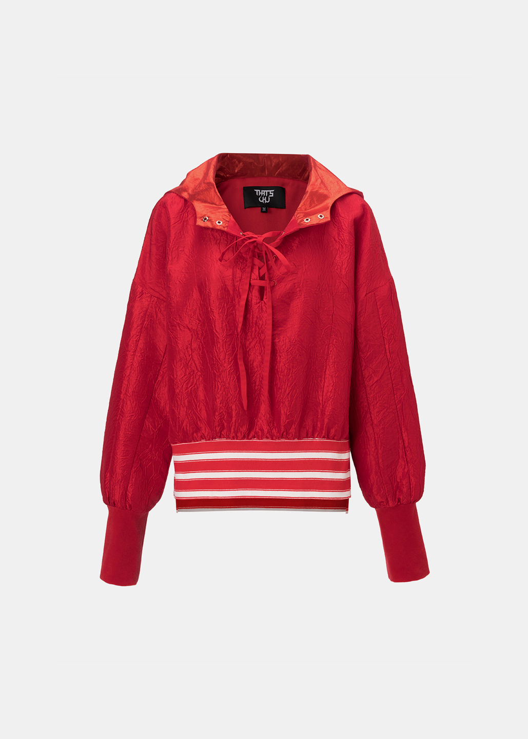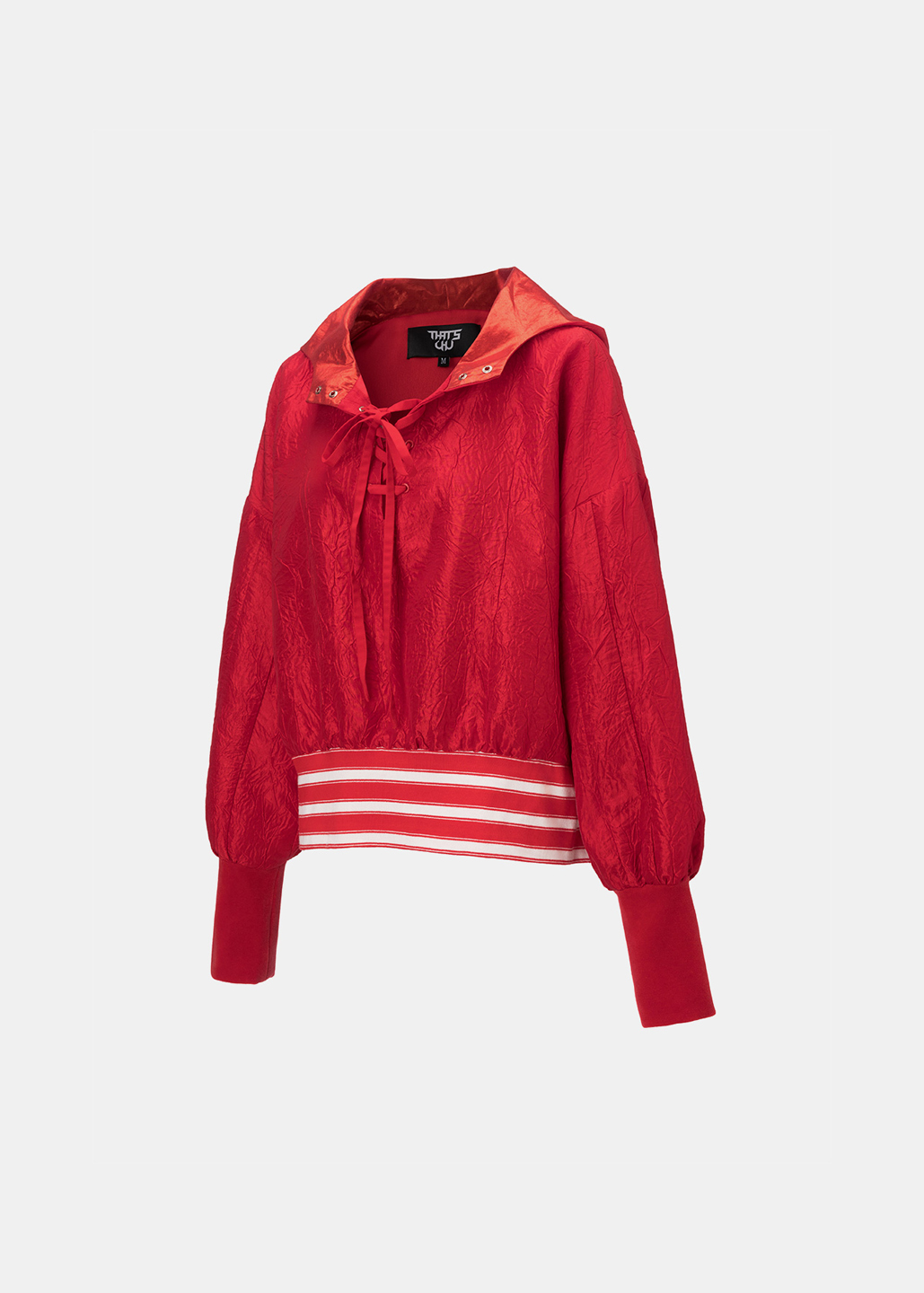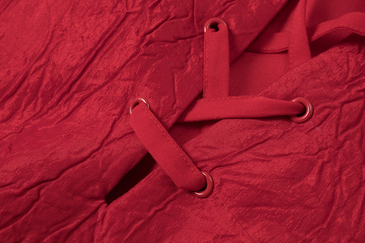 这款连帽卫衣采用压褶面料,轻盈舒适,赋予整体独特的纹理与层次感。打孔系带领口设计,既个性又充满细节感,下摆条纹设计,为整体增添了活力与时尚感。前后落差设计巧妙打造出立体轮廓,既有致又富有张力,展现出年轻态度的同时,又极具前卫与个性。