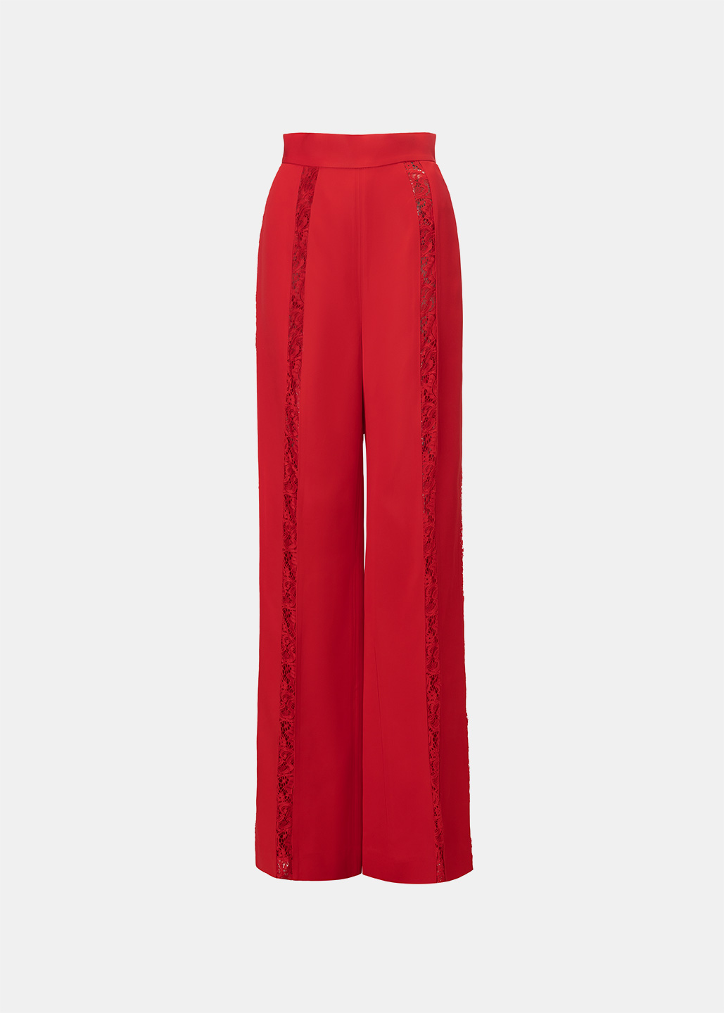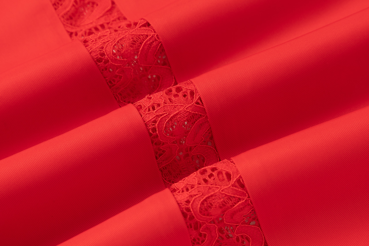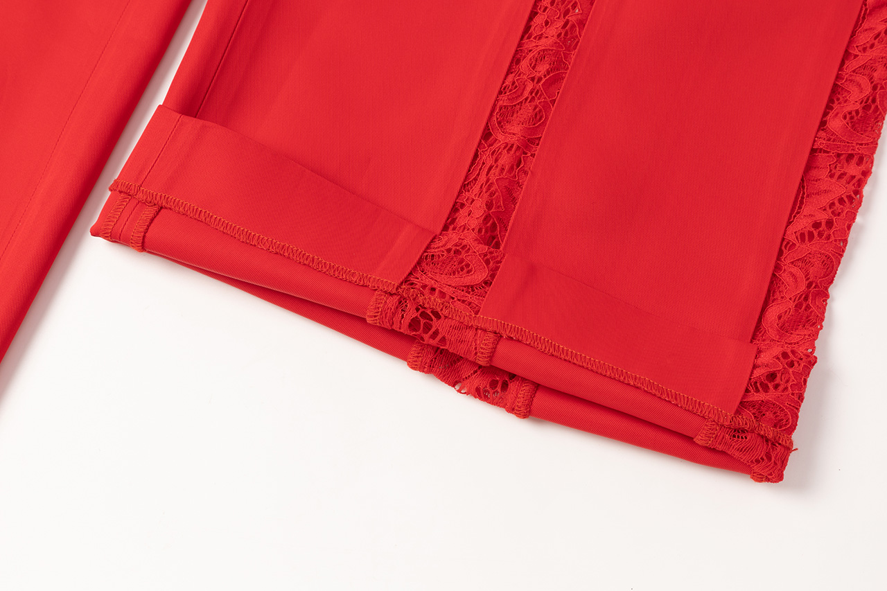 红色拼接蕾丝长裤