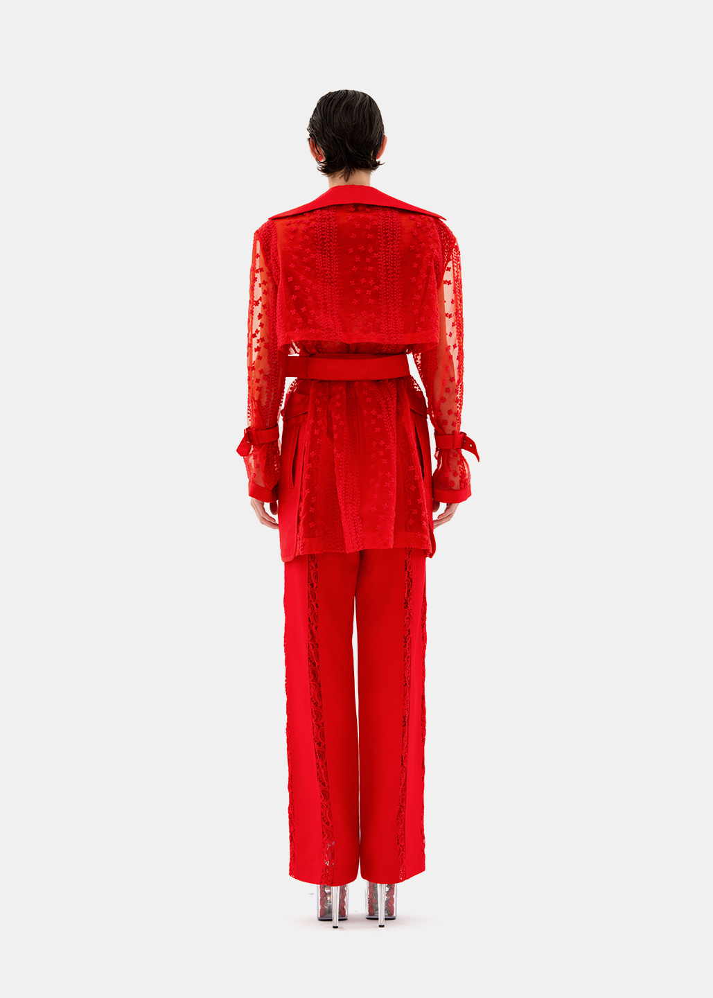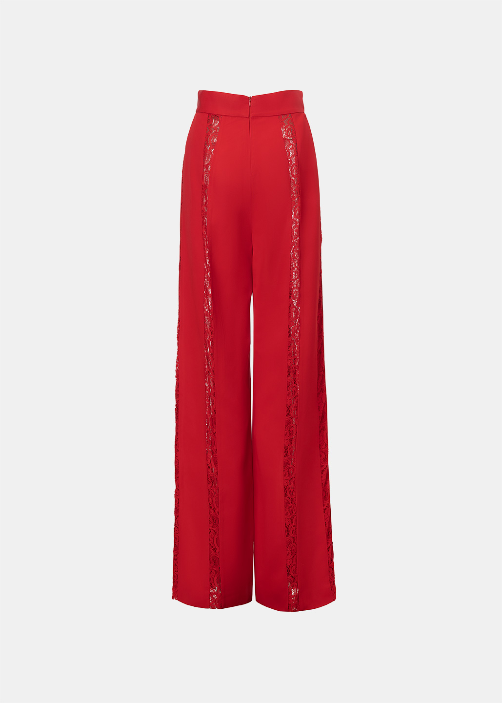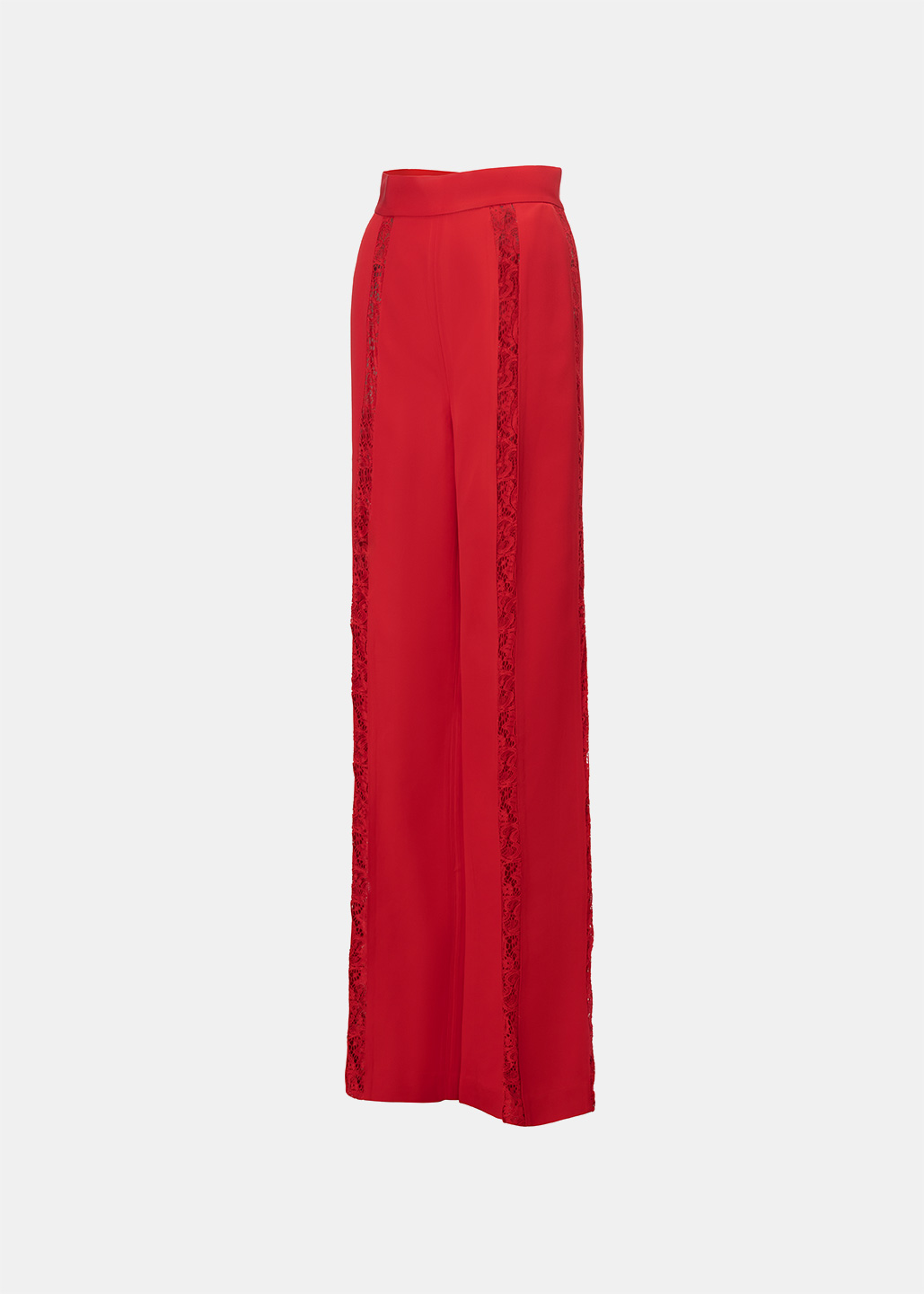 红色拼接蕾丝长裤