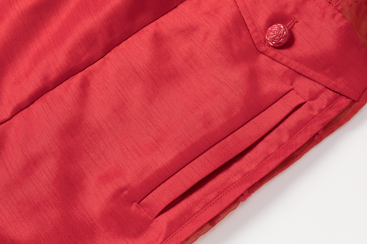 0076-L44-红色拼接蕾丝长裤