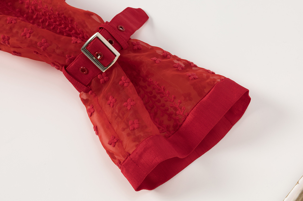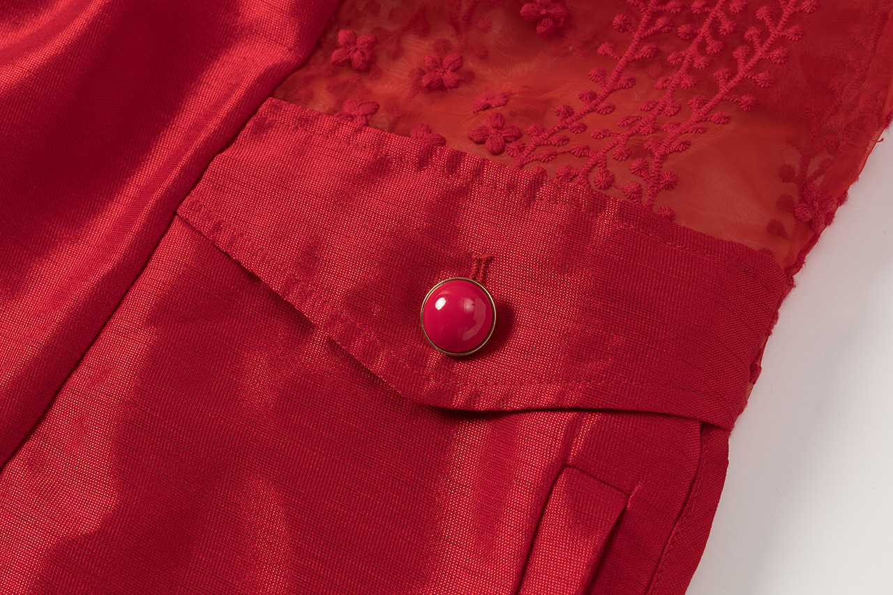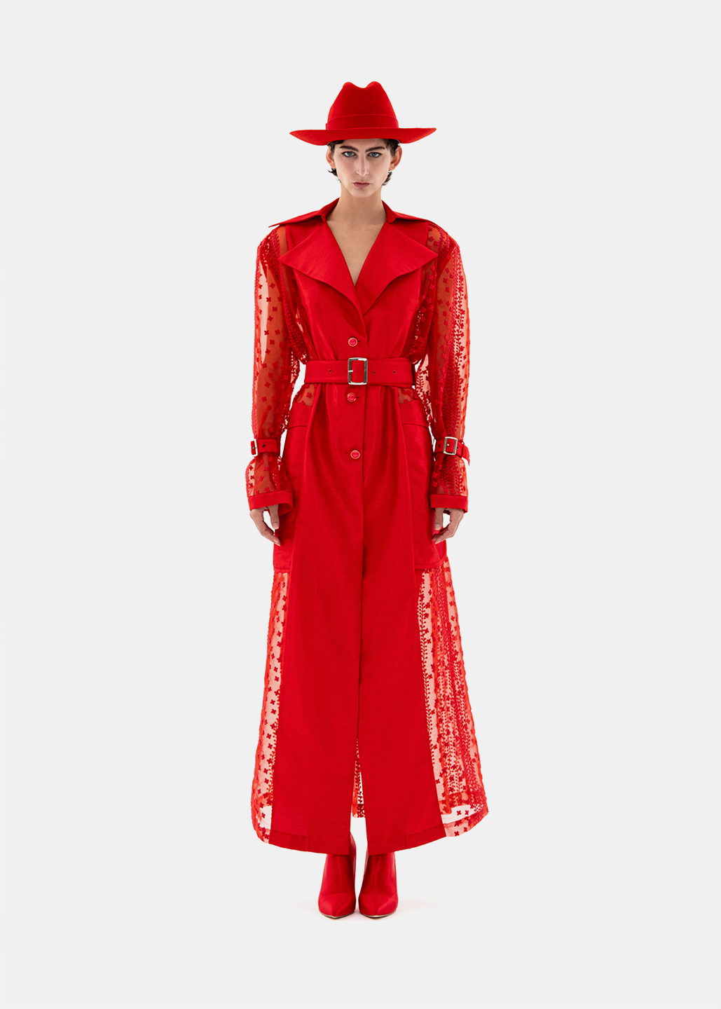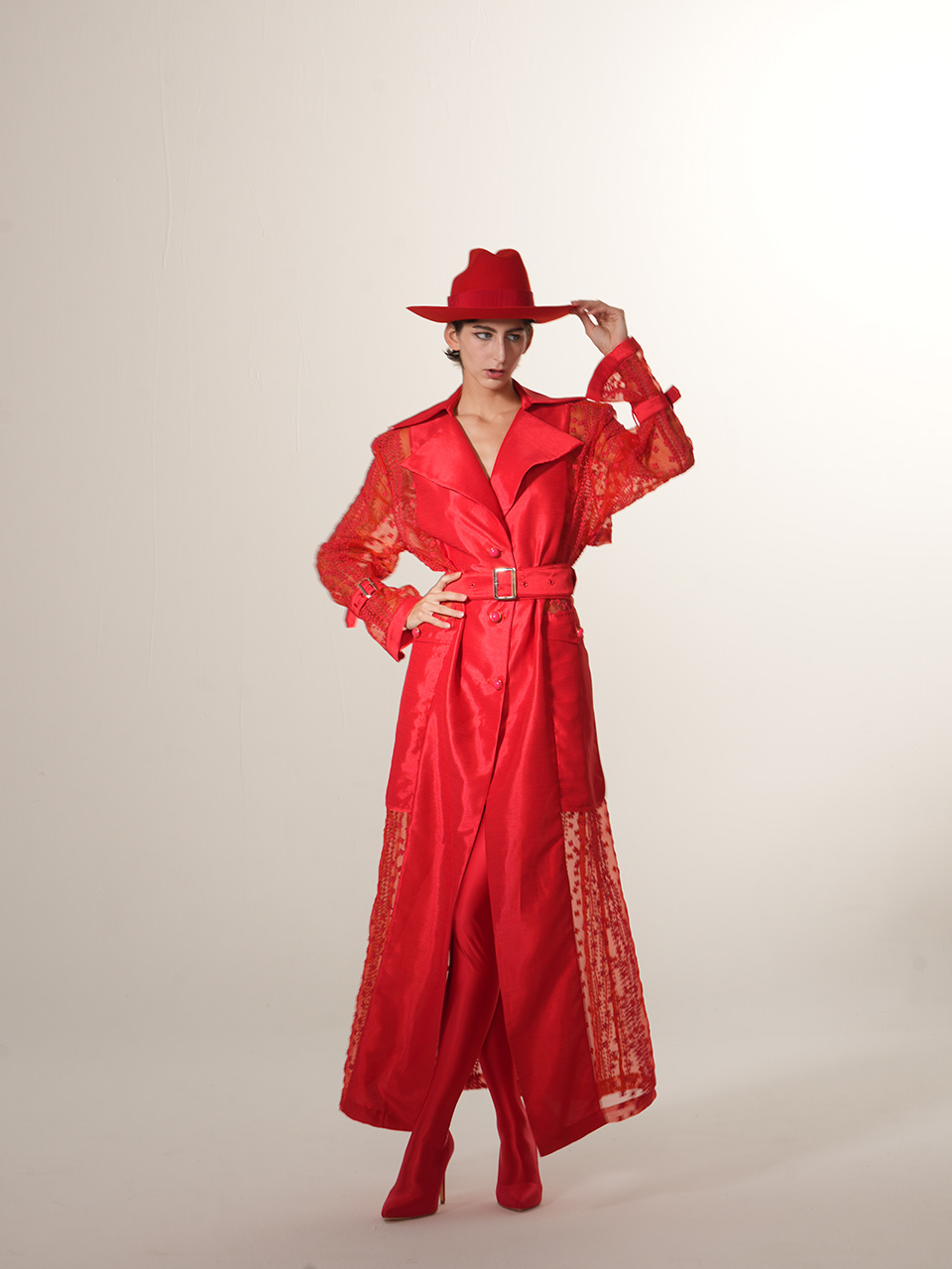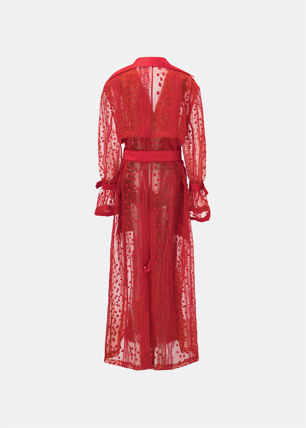 0079-L46-红色蕾丝拼接长风衣