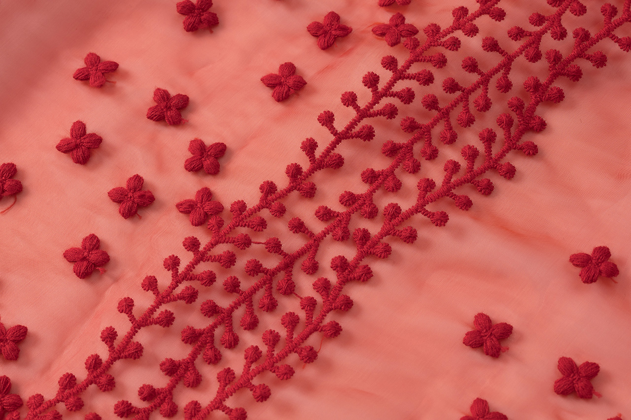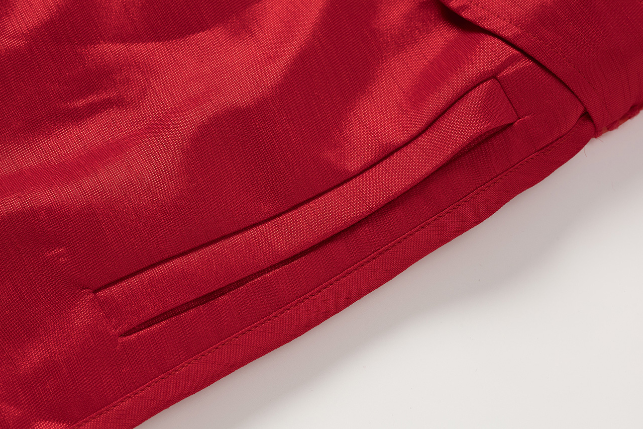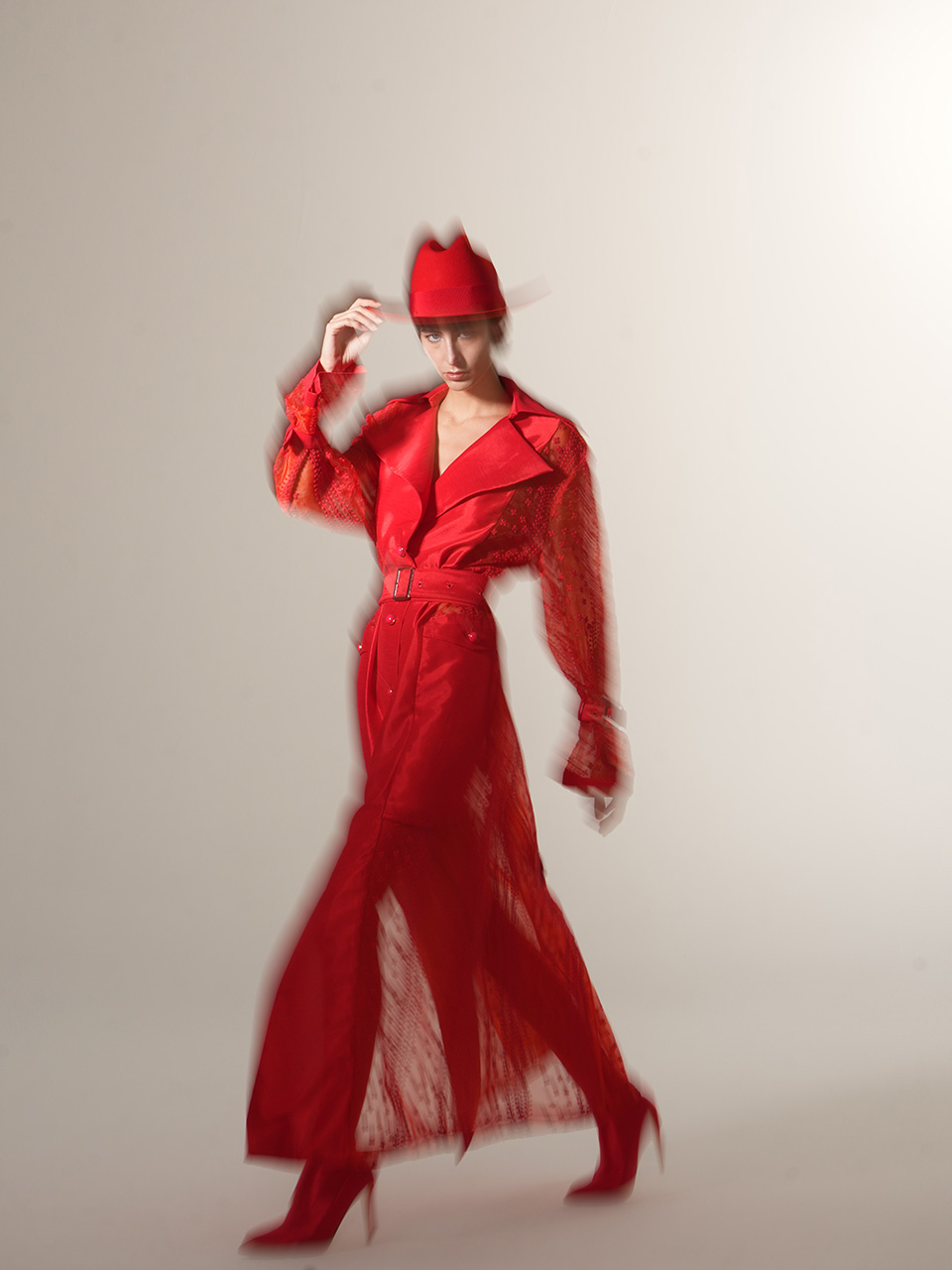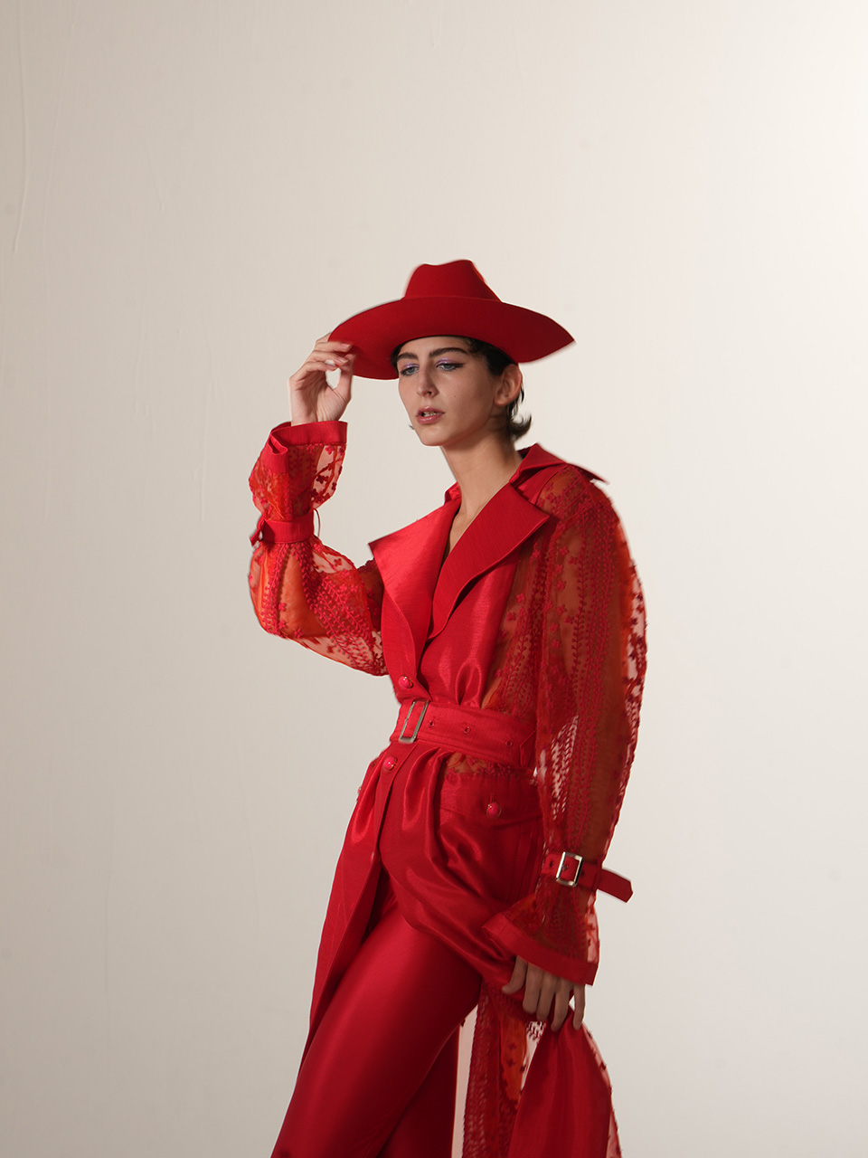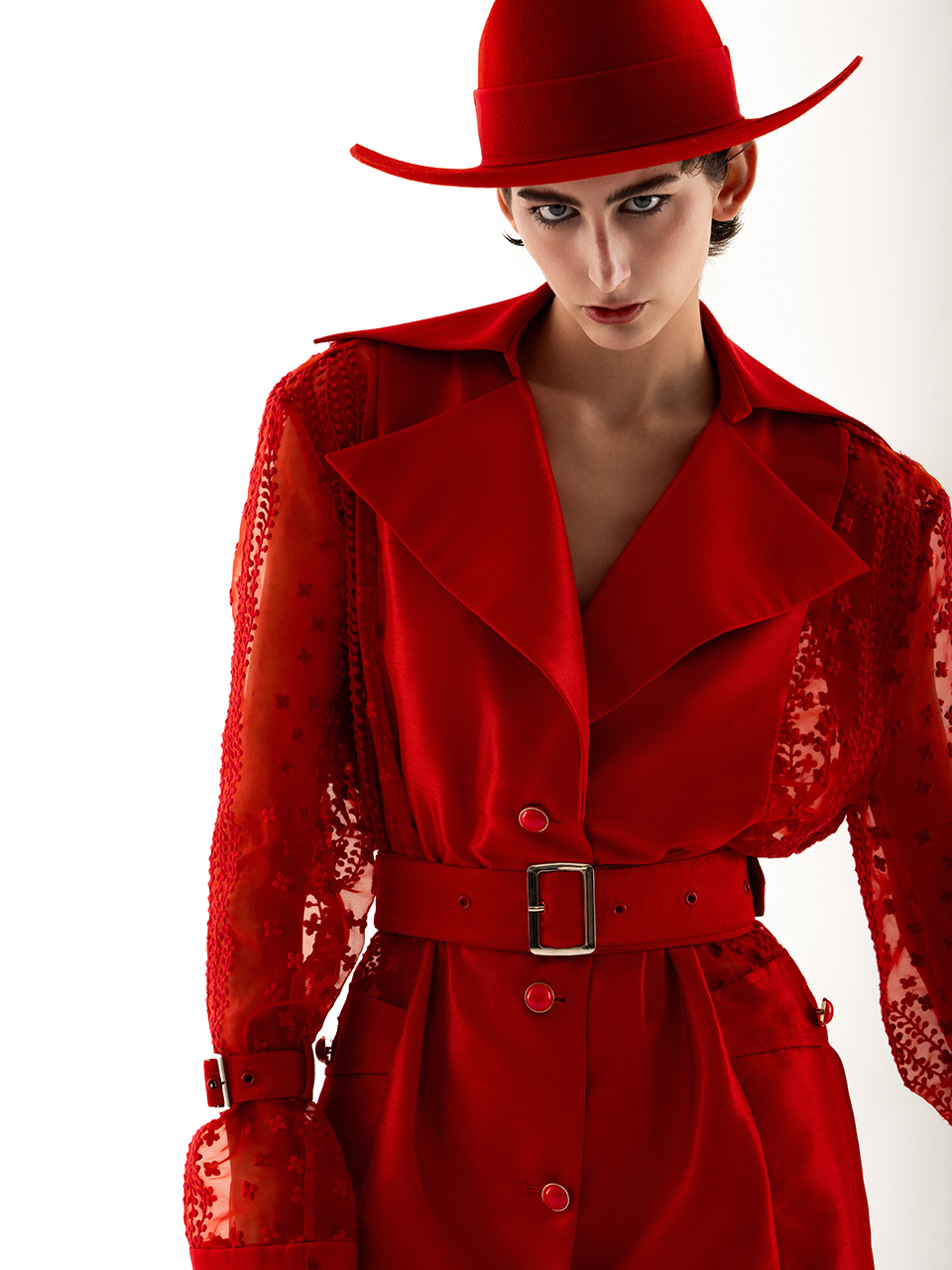 0079-L46-红色蕾丝拼接长风衣