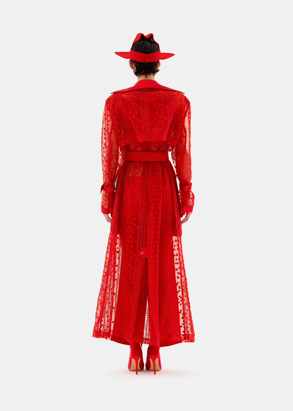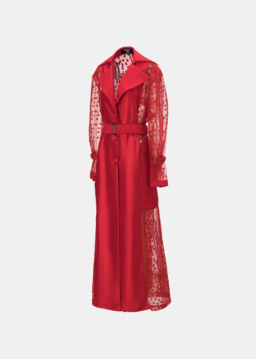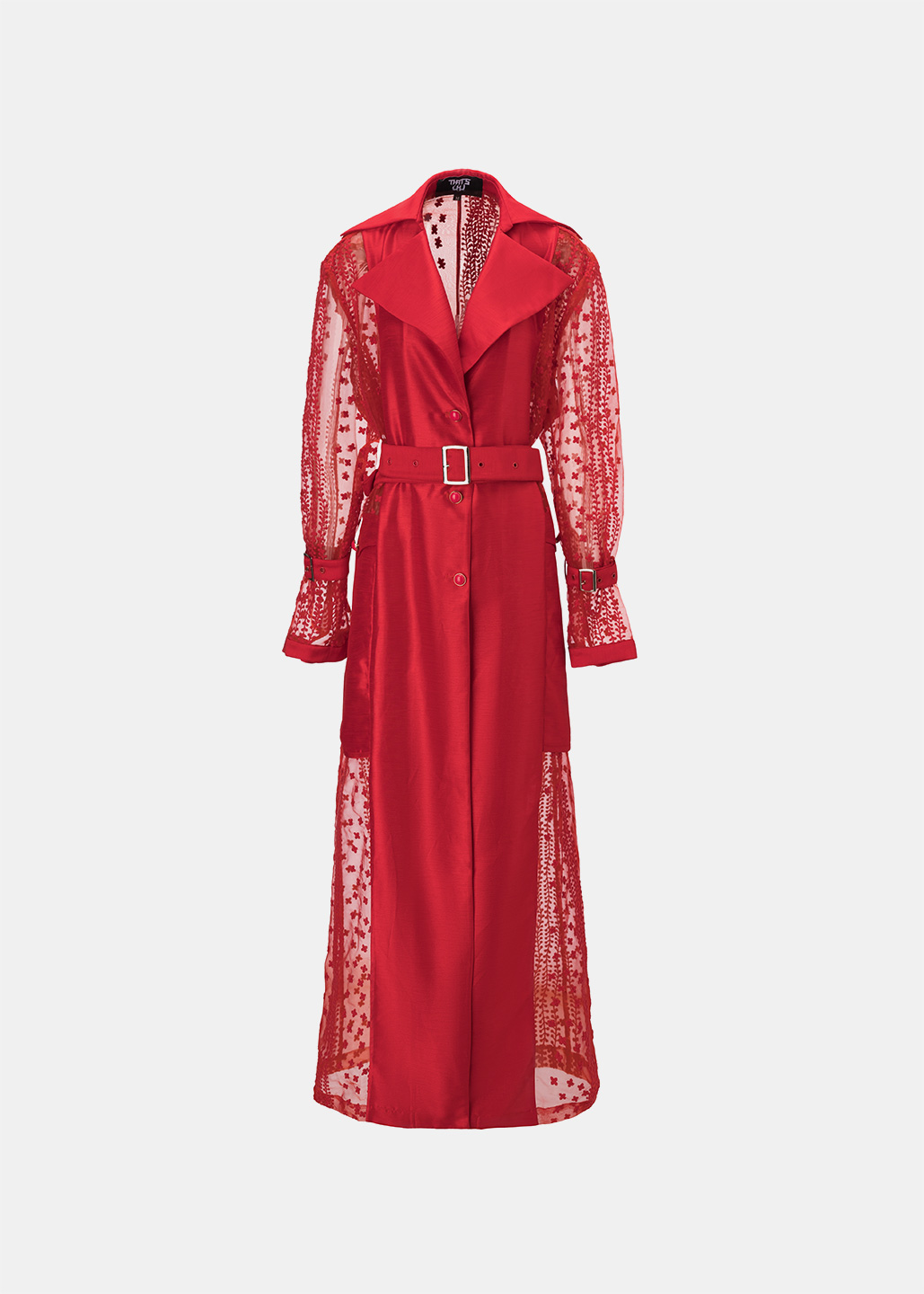 红色蕾丝拼接长风衣