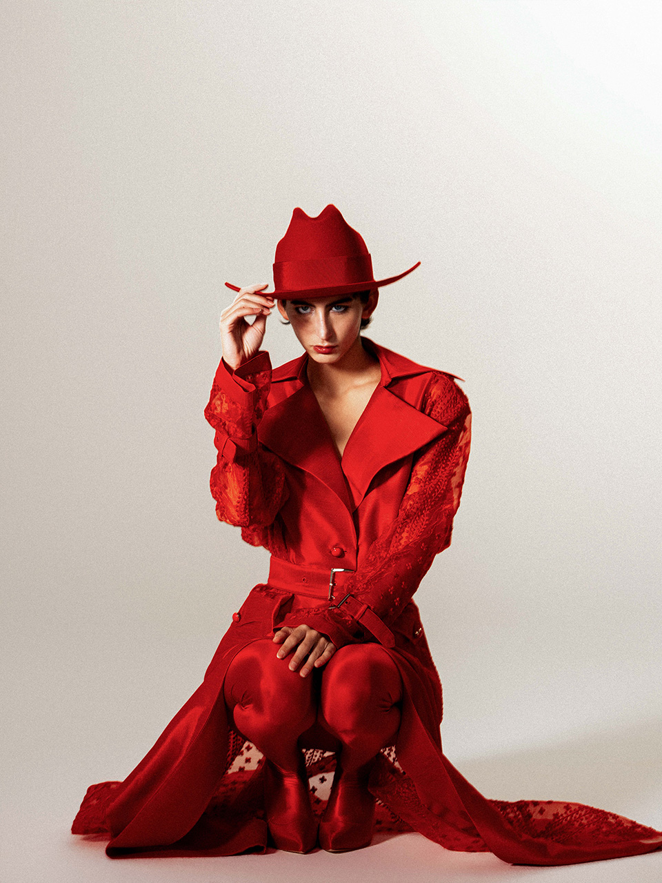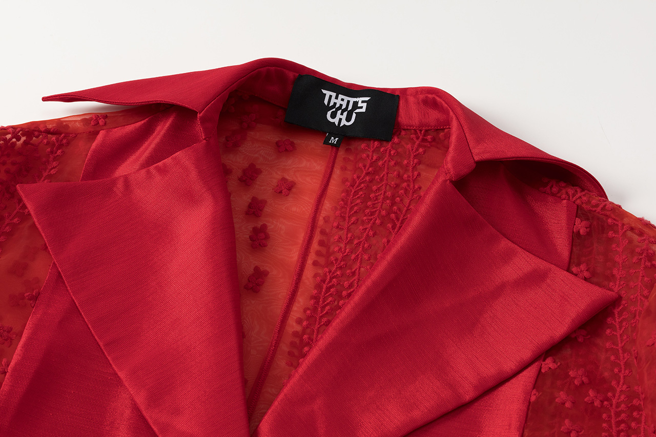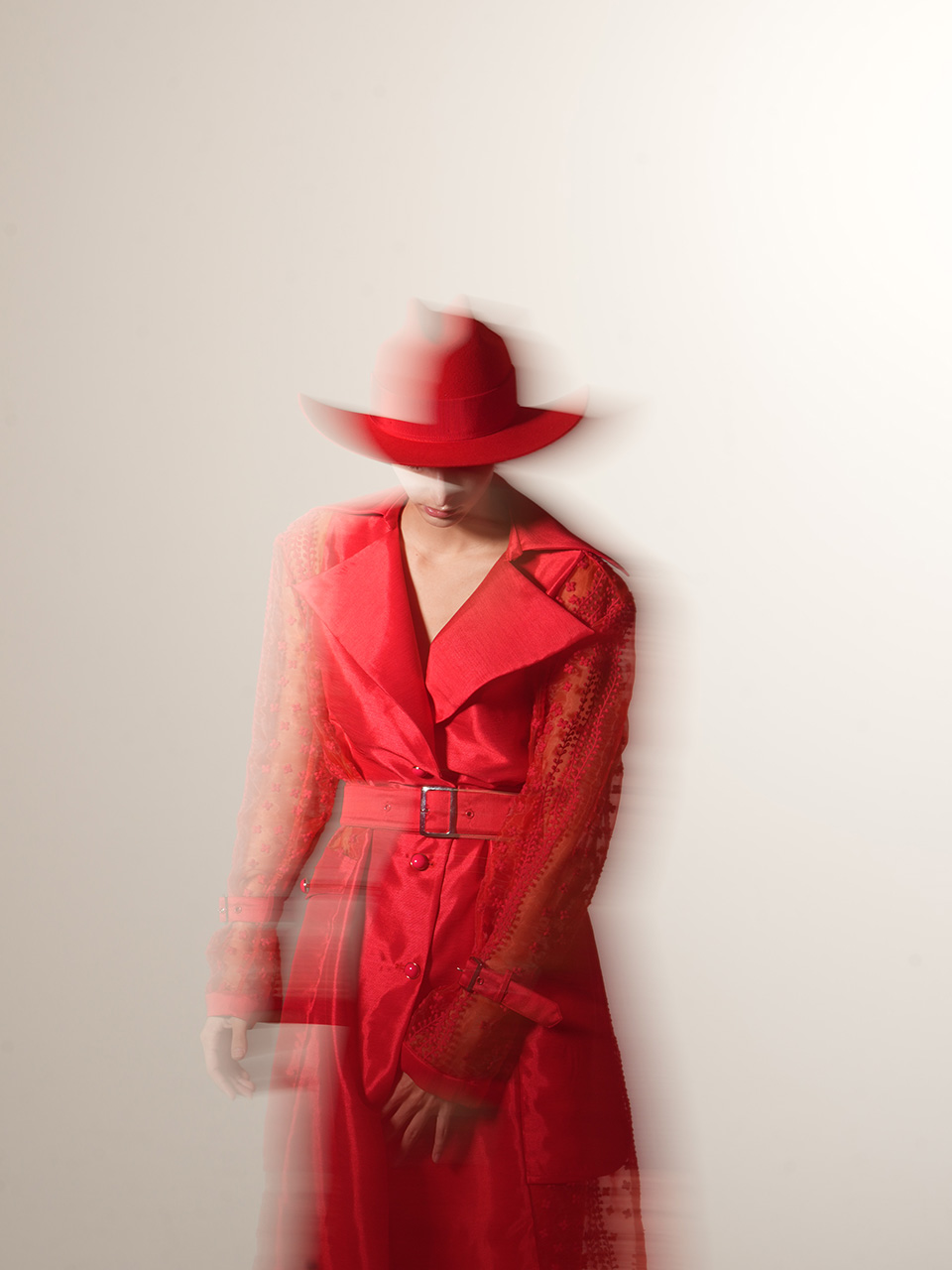红色蕾丝拼接长风衣