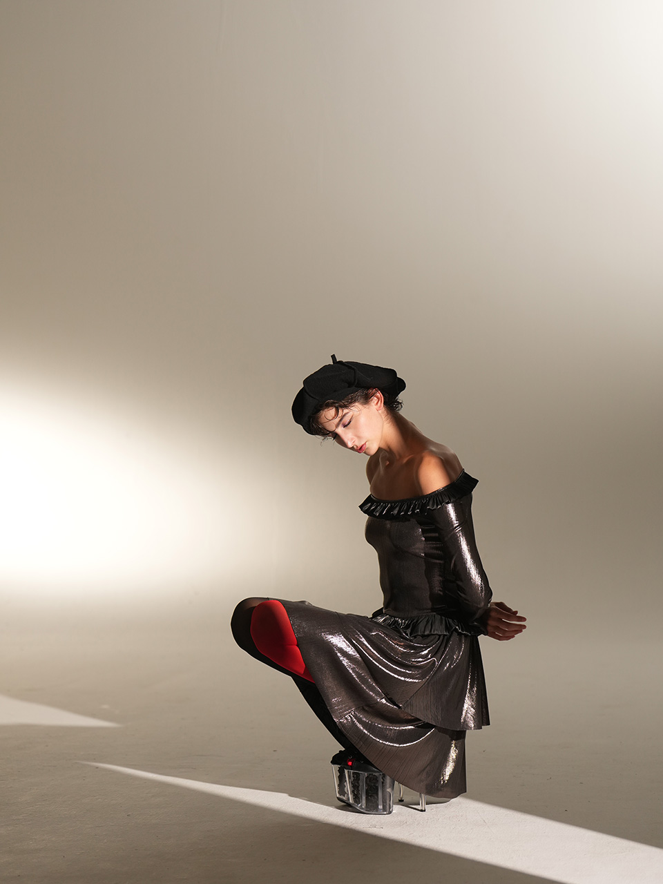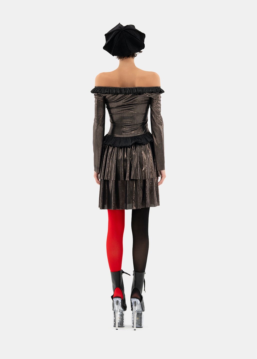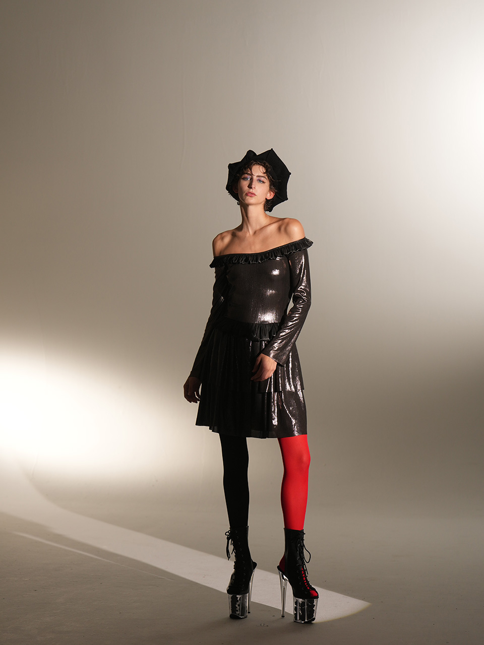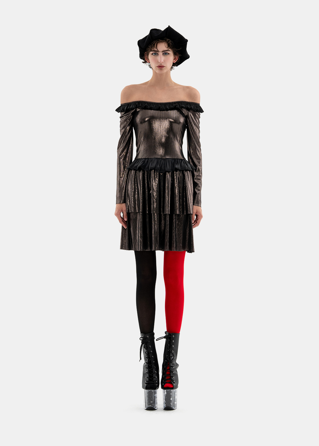 0084-L49-银黑荷叶边多层连衣裙
