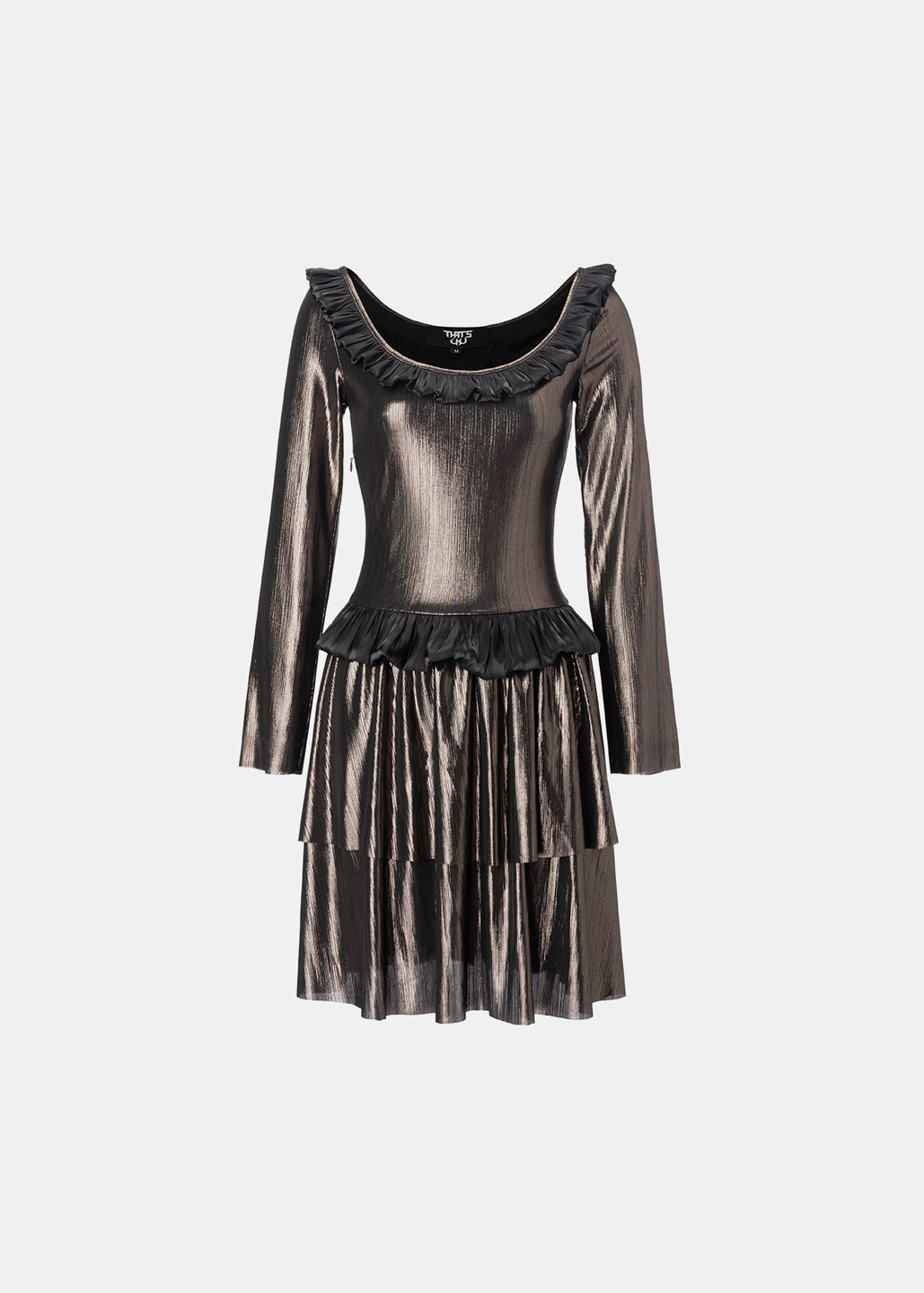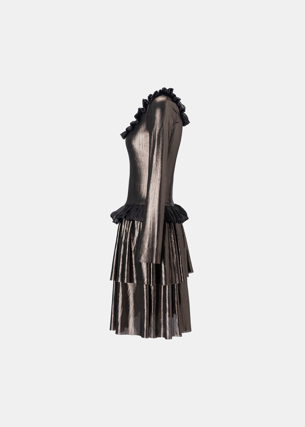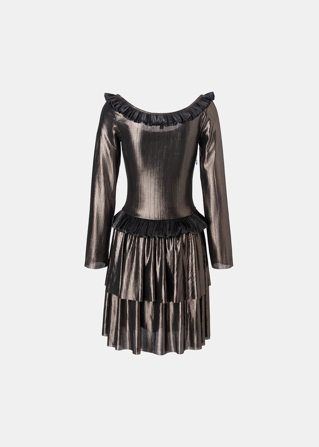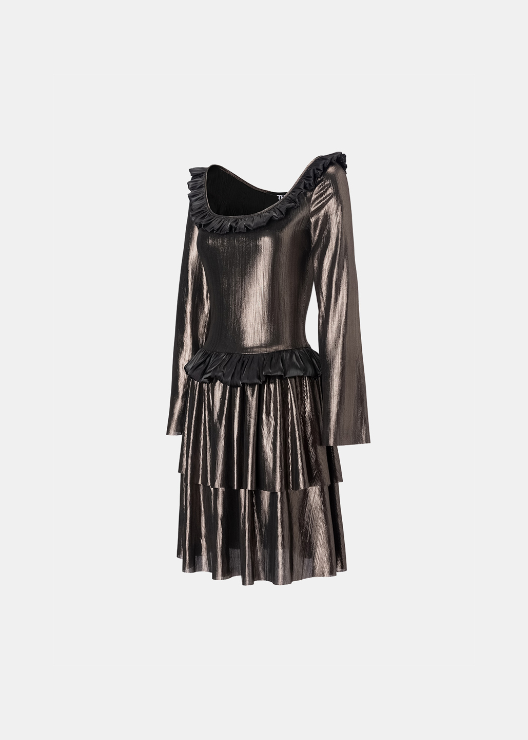 银黑荷叶边多层连衣裙